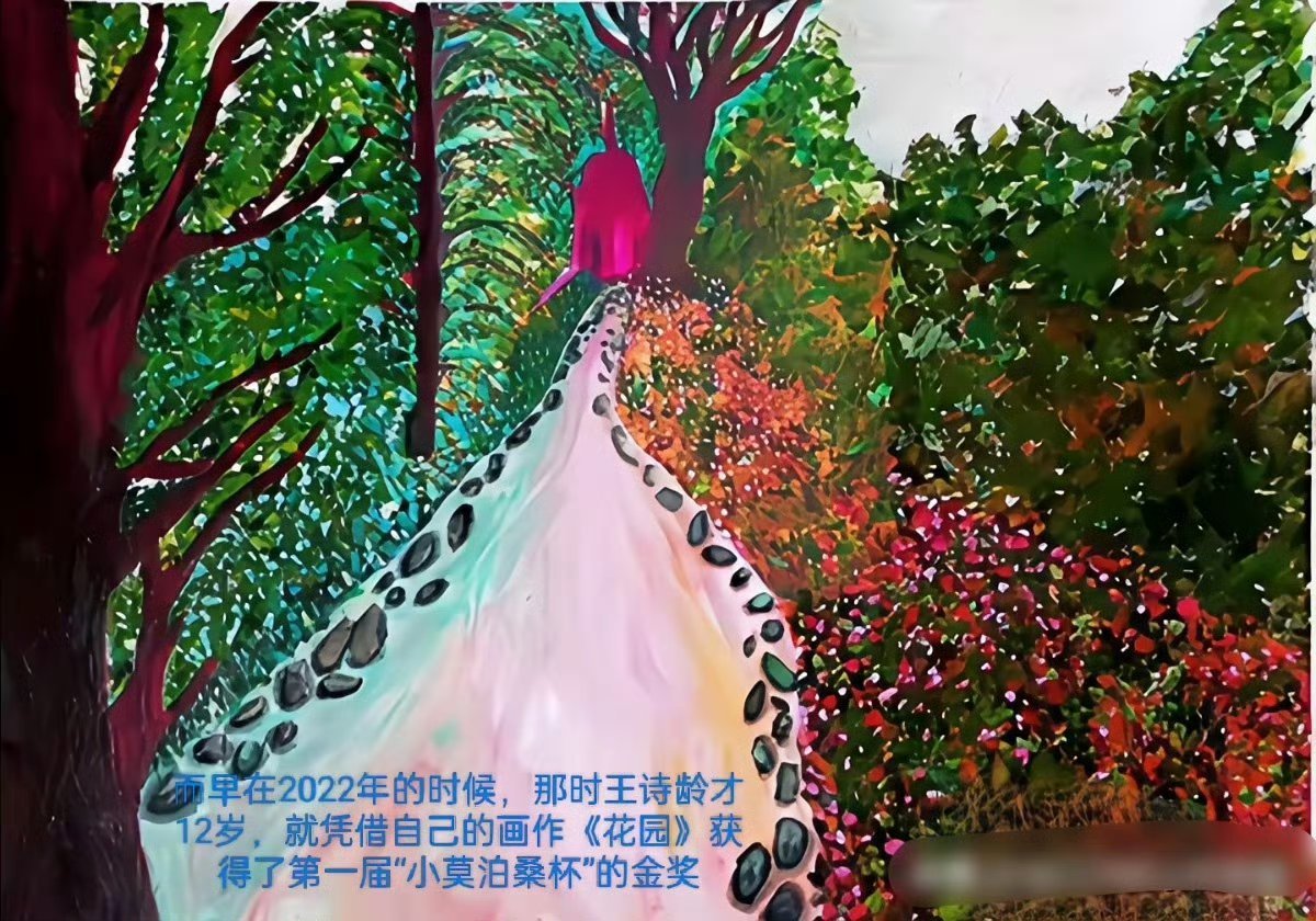 不会有人认为王诗龄只会营销美貌和有钱吧,15岁的她画的画已经得过许多奖了
