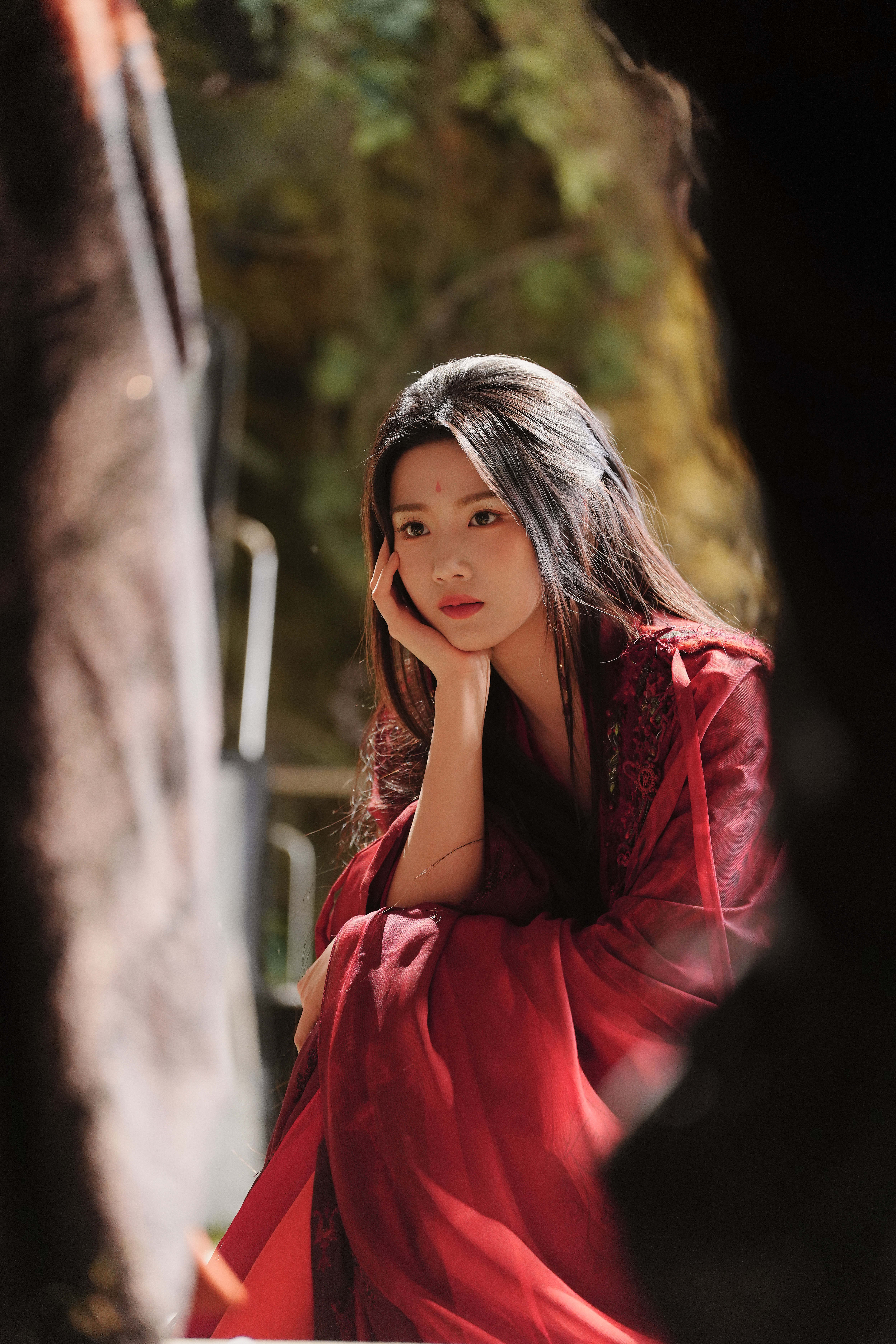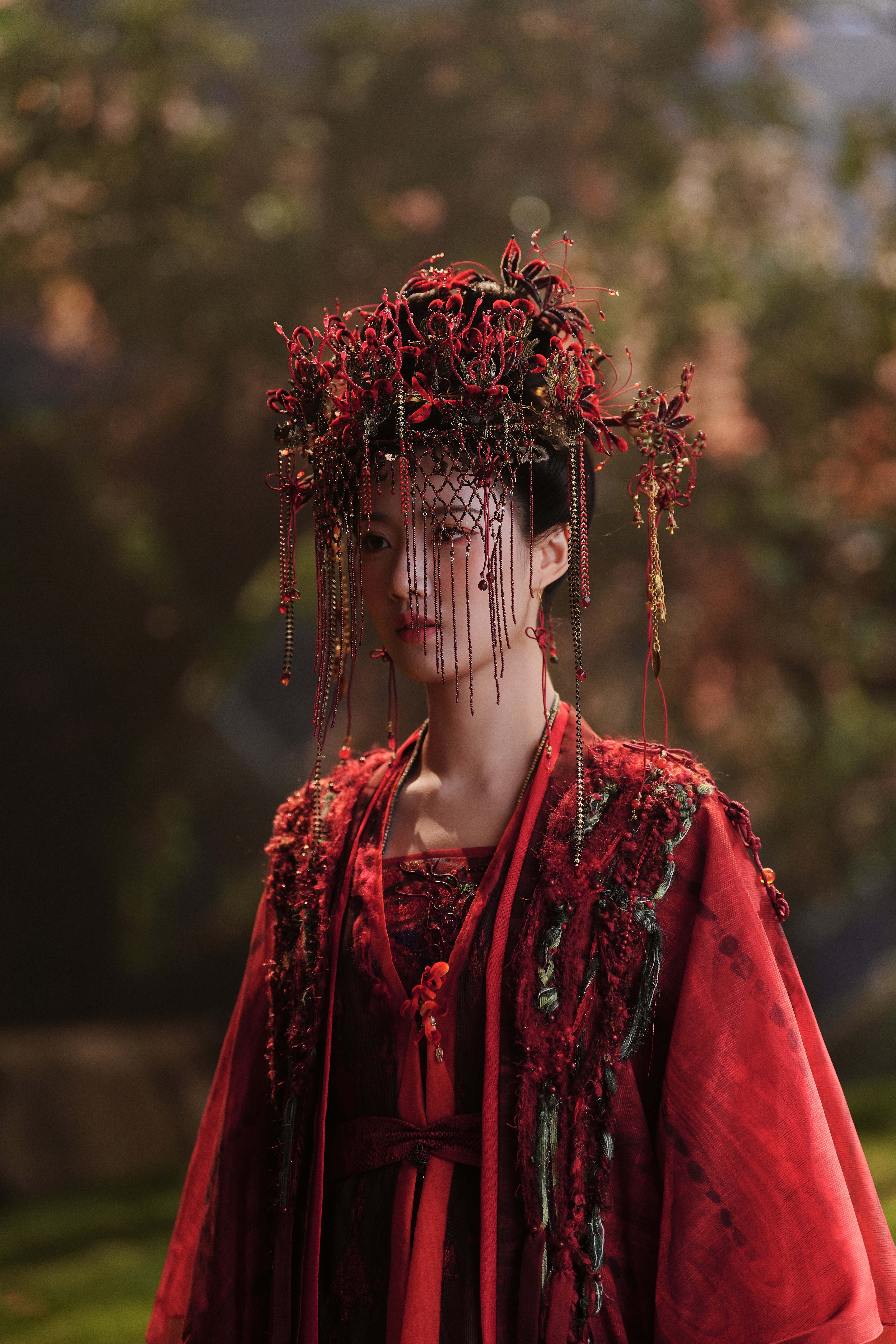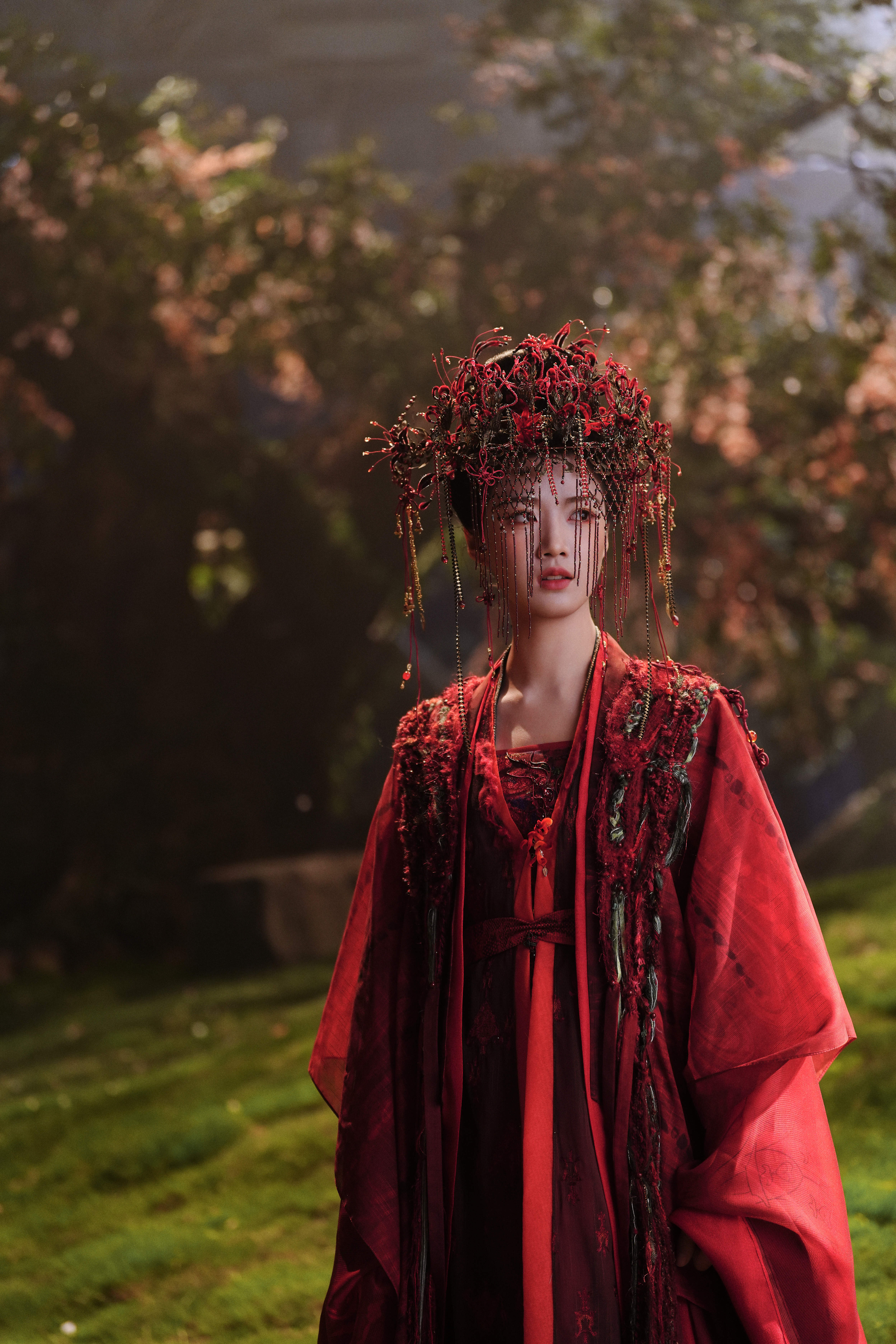 剧照-1嫁衣+面帘式头饰 2披发