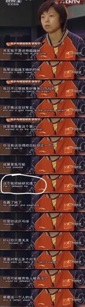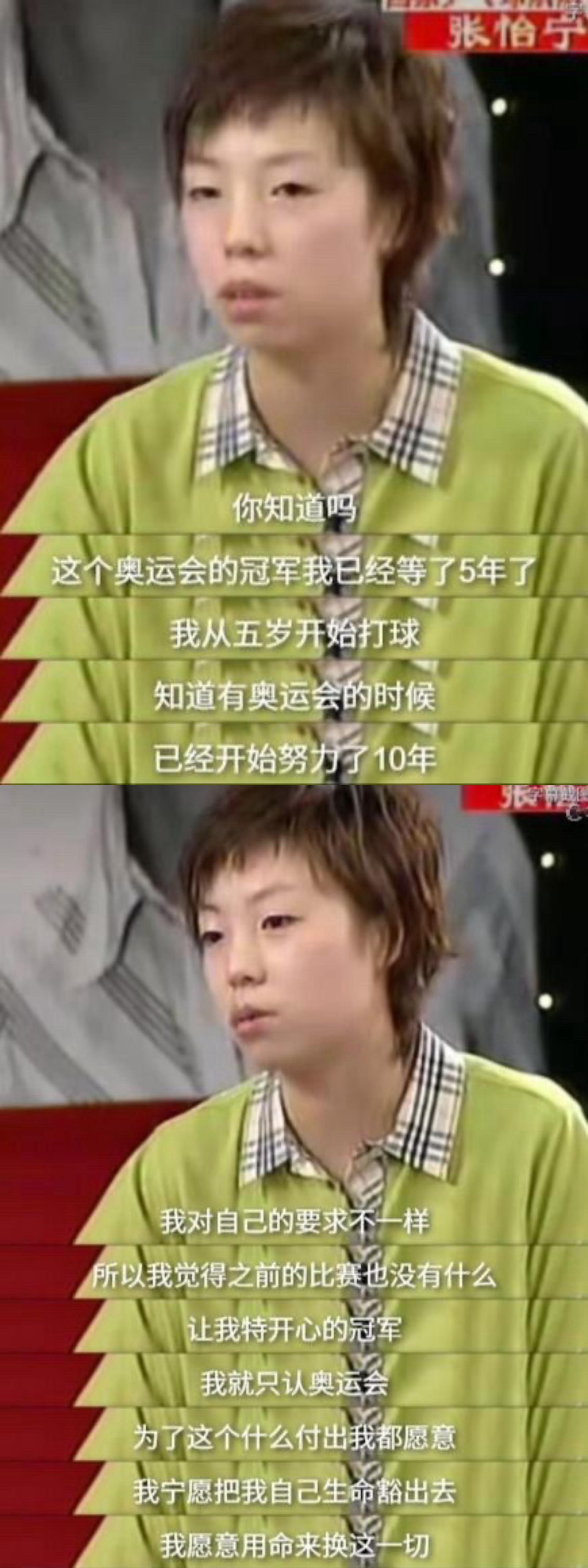 4️⃣张怡宁:“我就只认奥运会,为了这个什么付出我都愿意,我宁愿把我自己的生命豁出去,我愿意用命换来这一切。”【这个我把她(王楠)研究透了】