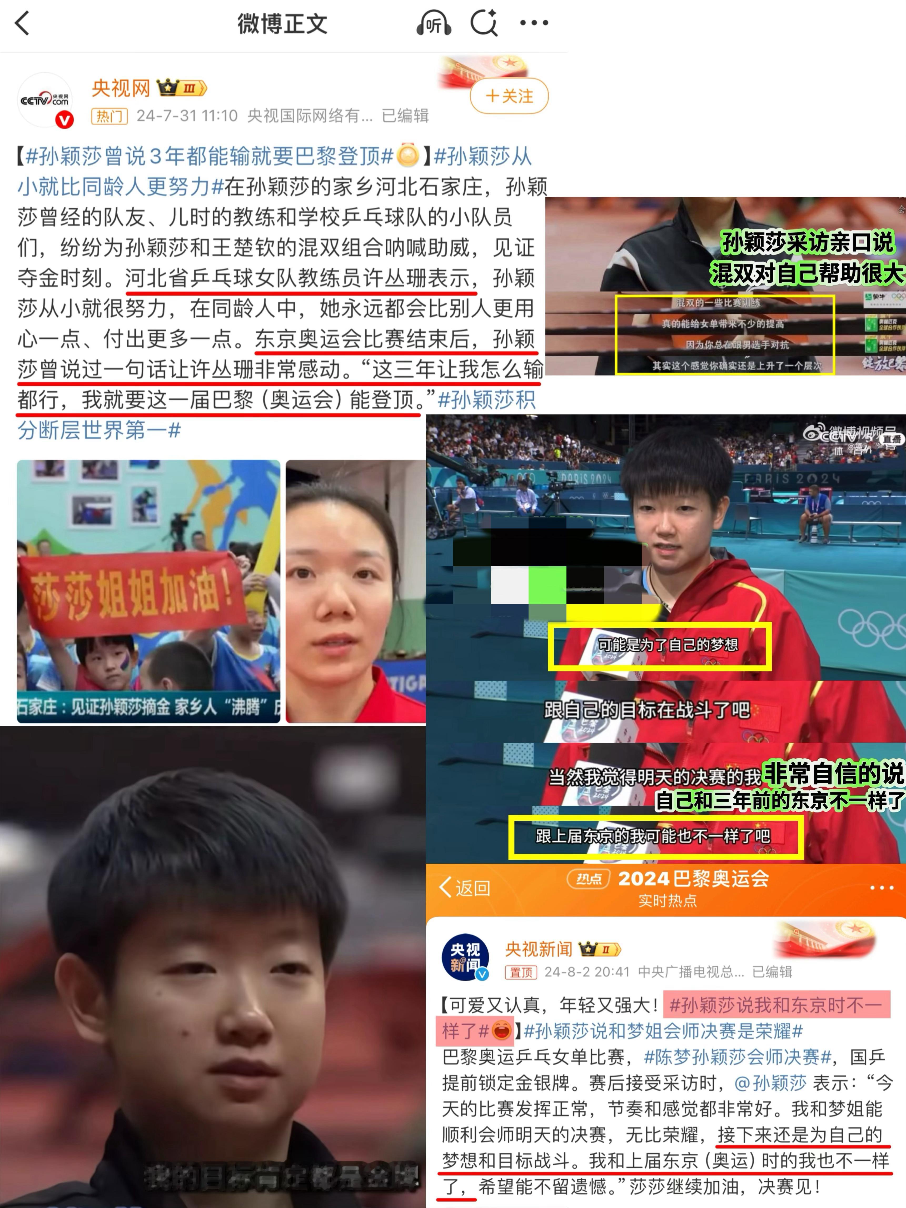 5️⃣东京奥运会结束后的孙 颖 莎:“巴黎这三年让我怎么输都行,我就要这一届巴黎奥运会能登顶。”我的目标肯定都是金牌。