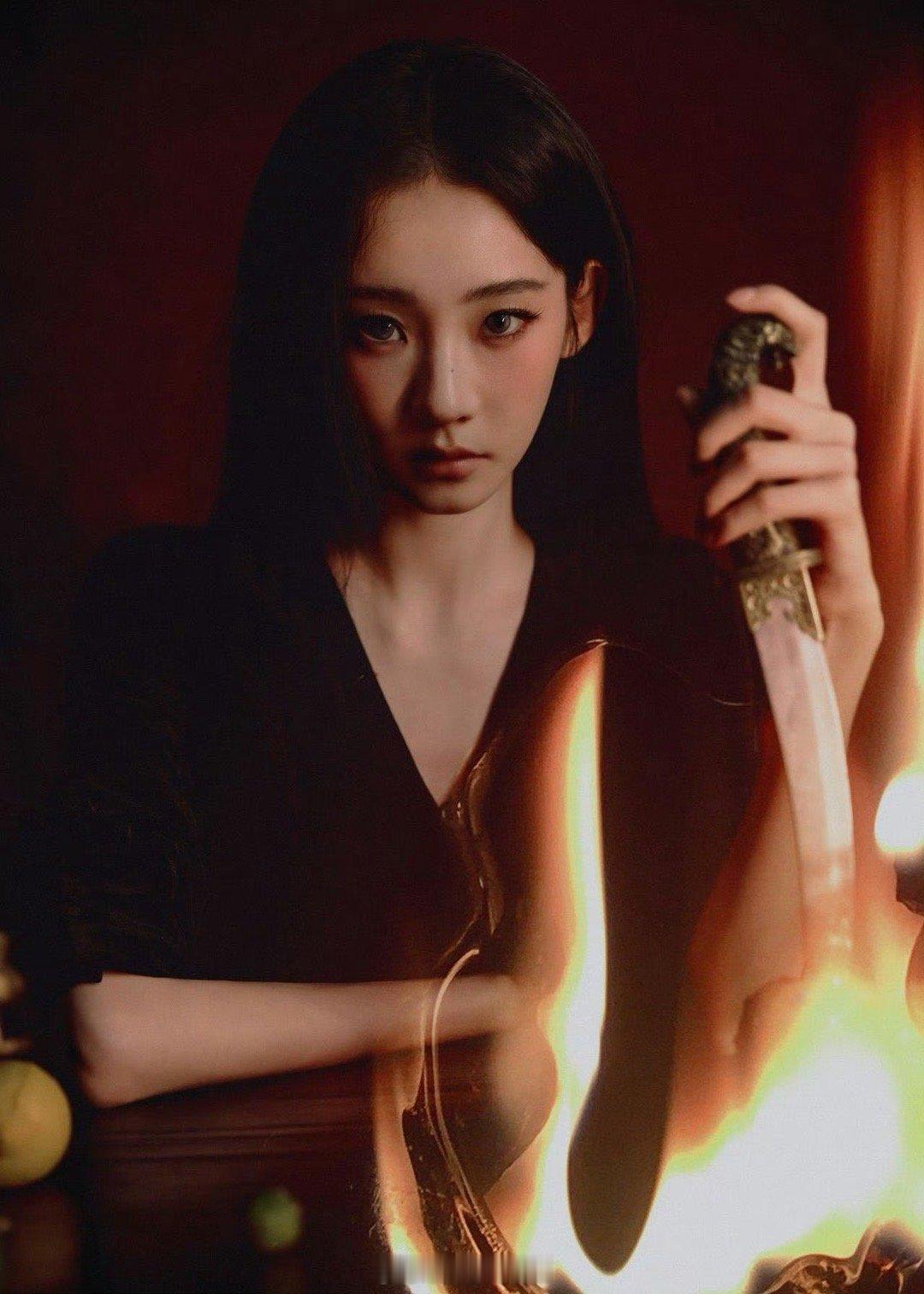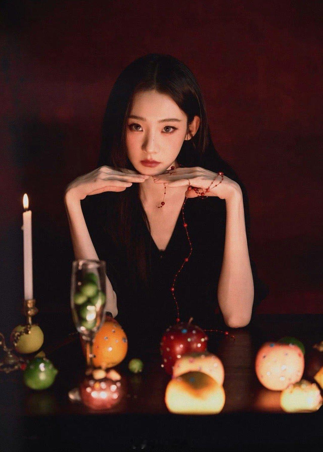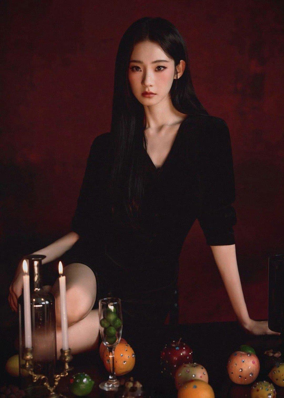 张艺凡哥特风美成啥了每一帧都美到心动!黑色V领裙凸显优雅气质,冷艳妆容让她气场