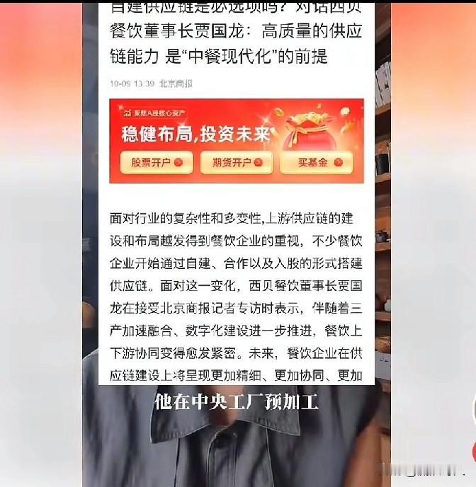 西贝又㕛叒一位女公关来了,她说→ “西贝不是预制菜,是为了溯源和安全而做的冷冻处理。相信很多有高知、有理性的人,都会力挺西贝。” 这位女士在视频中如是说: ▪西贝敢跟舆论顶流去硬刚,是因为他身后有1.8万员工,是1.8万员工的饭碗,是餐饮引领者,代表着整个行业在焦虑、在愤怒。 ▪西贝不是预制菜,是冷冻,冷冻是为了溯源和安全,直采新鲜菜、急速冷冻、锁住营养;是在寻找兼顾味道标准和安全的方案。 ▪说西贝贵,是因为中餐被长期低估。(说到这,她更是列举了日料、西餐的价格对比)还反问:这就是对中餐的双标吗? ▪视频最后,她力挺西贝,说有高知、有理性的人,都会力挺西贝!