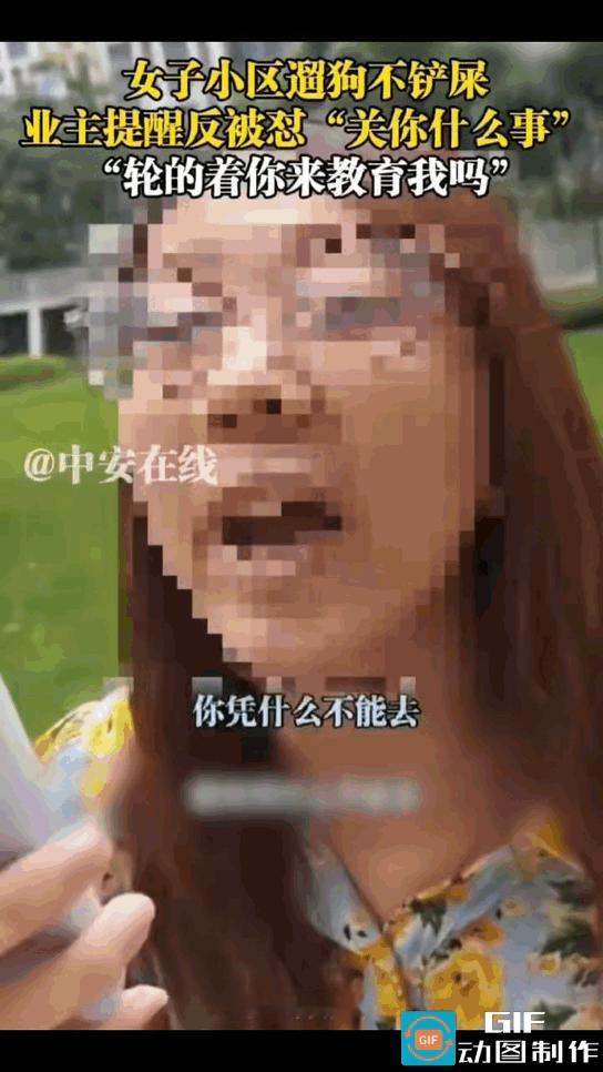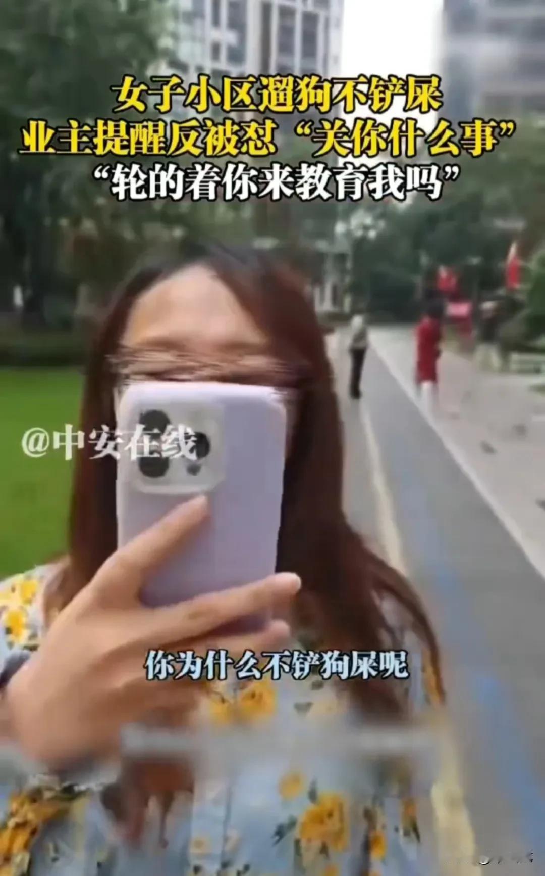 女子在小区内遛狗不铲狗屎,业主好心提醒她要铲狗屎,反遭女子怒怼:“关你什么事?”