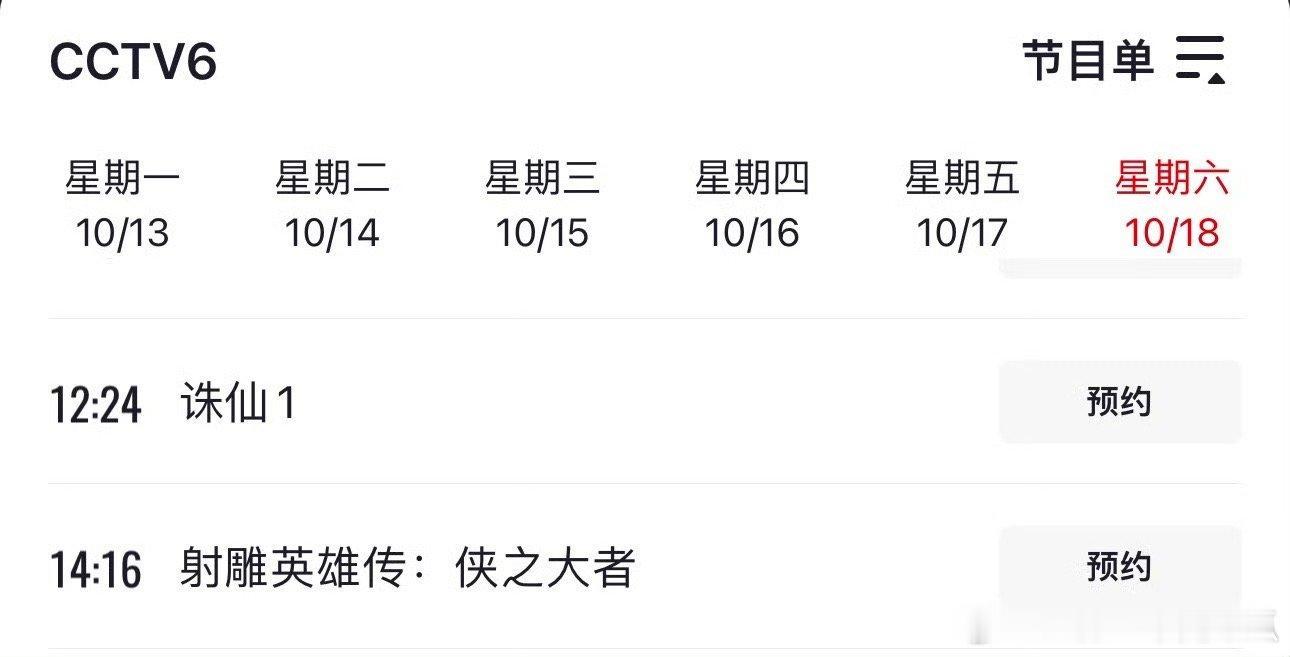 cctv6下周6播完诛仙接着播射雕英雄传侠之大者[嘻嘻]看完张小凡看靖哥哥