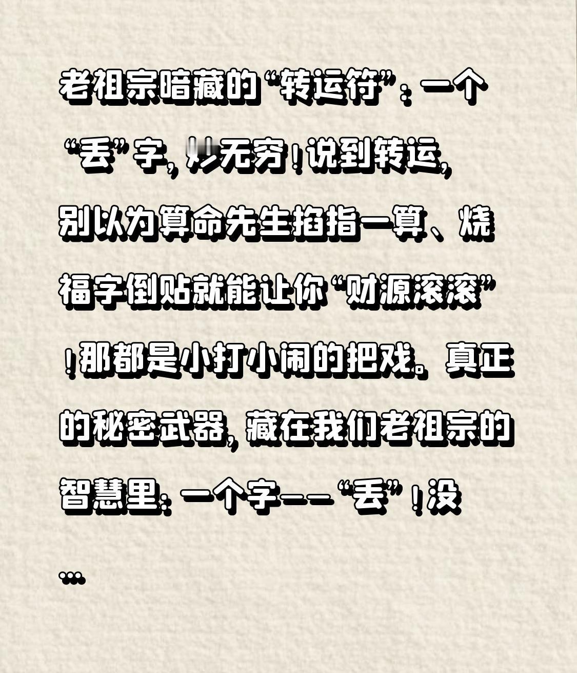 老祖宗暗藏的“转运符”:一个“丢”字,妙无穷! 说到转运,别以为算命先生掐指一