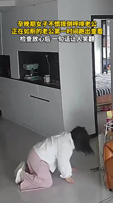 “电视剧都不敢这么演!”10 月 8 日,四川,一女子怀孕晚期在客厅里走路时,手里还握着刚热好的牛奶,杯沿的热气还没散,脚边不知何时多了把没归位的塑料凳子,她没留意就被绊了个趔趄。 她摔倒时第一反应是双手环住肚子,膝盖重重磕在地板上,疼得她倒吸一口凉气,眼泪瞬间就涌到了眼眶边。 她坐在地上缓了两秒,才想起喊厕所里的丈夫,声音带着点哭腔却又刻意放轻,怕太大声惊到肚子里的宝宝。 厕所里的冲水声突然停了,接着就是 “咚咚” 的脚步声,丈夫跑出来时裤子还没完全提好,裤腰往下滑了一截,手里还攥着半张没叠好的卫生纸。 他蹲到妻子身边,先没问怎么摔的,而是用手背轻轻碰了碰妻子的膝盖,又小心翼翼托着她的腰问 “肚子没不舒服吧?疼不疼?”,语气里满是慌神。 妻子摇摇头说就膝盖疼,他这才松了口气,扶着妻子慢慢挪到沙发上,又蹲下来把妻子的裤腿挽到膝盖上面,看见只是有点红印子,才直起身擦了擦额头的汗。 然后他才想起自己的事,有点不好意思地挠挠头,笑着说 “连屁股都还没来得及擦,听见你喊我,我赶紧就跑出来了”。 妻子本来还憋着委屈,一听这话 “噗嗤” 就笑了,眼泪还挂在脸上呢,笑着笑着就觉得心里暖暖的,刚才的害怕也淡了不少。 这段视频发到网上后,有网友留言说 “这才是真关心啊,不是先指责怎么不小心,而是先看人有没有事”,还有人说 “我孕晚期摔了一跤,我老公第一句是‘你咋这么笨’,对比太明显了”。 中国妇幼保健协会 2024 年发布的《孕晚期居家安全指南》里就提过,孕晚期女性因为子宫增大,重心会往前移,平衡能力会变差,家里一定要收好矮凳子、地毯边角这些容易绊倒的东西,走路时别分心看手机。 这位妻子后来也在评论里说,之前觉得家里环境熟,没把这些提醒当回事,这次摔了之后,赶紧把家里的小物件都收进柜子里,走路也不敢再看手机了。 丈夫虽然说的话有点 “糙”,甚至有点好笑,但那种不管自己正在做什么,先冲过来护着妻子的样子,真的让人觉得特别暖,能看出来他平时就很在意妻子。 毕竟孕晚期的女生身体本来就累,情绪也容易因为激素变化变得敏感,身边人这样及时的关心,比说多少句 “多注意” 都管用。 你们身边有没有过这种看着有点小狼狈,却又藏着满满的在乎的小事呀? 信息来源:《孕晚期女子不慎摔倒呼唤老公,正在如厕的老公第一时间跑出查看,检查放心后一句话让人笑翻》牟平融媒