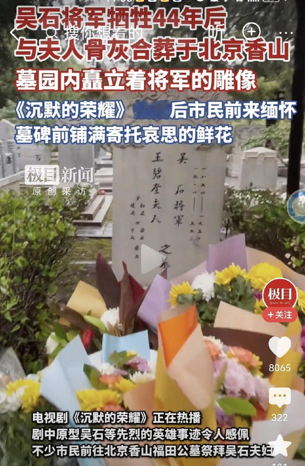 吴石烈士,人民不会忘记你! 10月9日、10日,北京 有100多名市民手捧鲜花,到位于香山的福田公墓的吴石烈士墓前,祭拜烈士,寄托哀思,表达对烈士的崇敬之情 烈士墓前摆满了鲜花,吴石烈士和夫人的墓碑被鲜花簇拥着。 工作人员告诉记者:市民说因为看了电视剧《沉默的荣耀》… 一个北京大爷含着热泪说: “我们今天的幸福生活,是他们用生命换来的”。 75年尘封的记忆,一旦打开,英雄为国为民的精神依然熠熠生辉,光照后人! 吴石烈士和他的妻子,一定能看到这一幕!他们所有的付出和牺牲都值得! 想起郁达夫在纪念鲁迅大会上的一句名言: “一个没有英雄的民族是不幸的,一个有英雄却不知敬重的民族是不可救药的!” 中国,是一个有英雄敬重英雄的国家,为北京市民点赞👍👍👍👍 吴石烈士 吴老永垂不朽