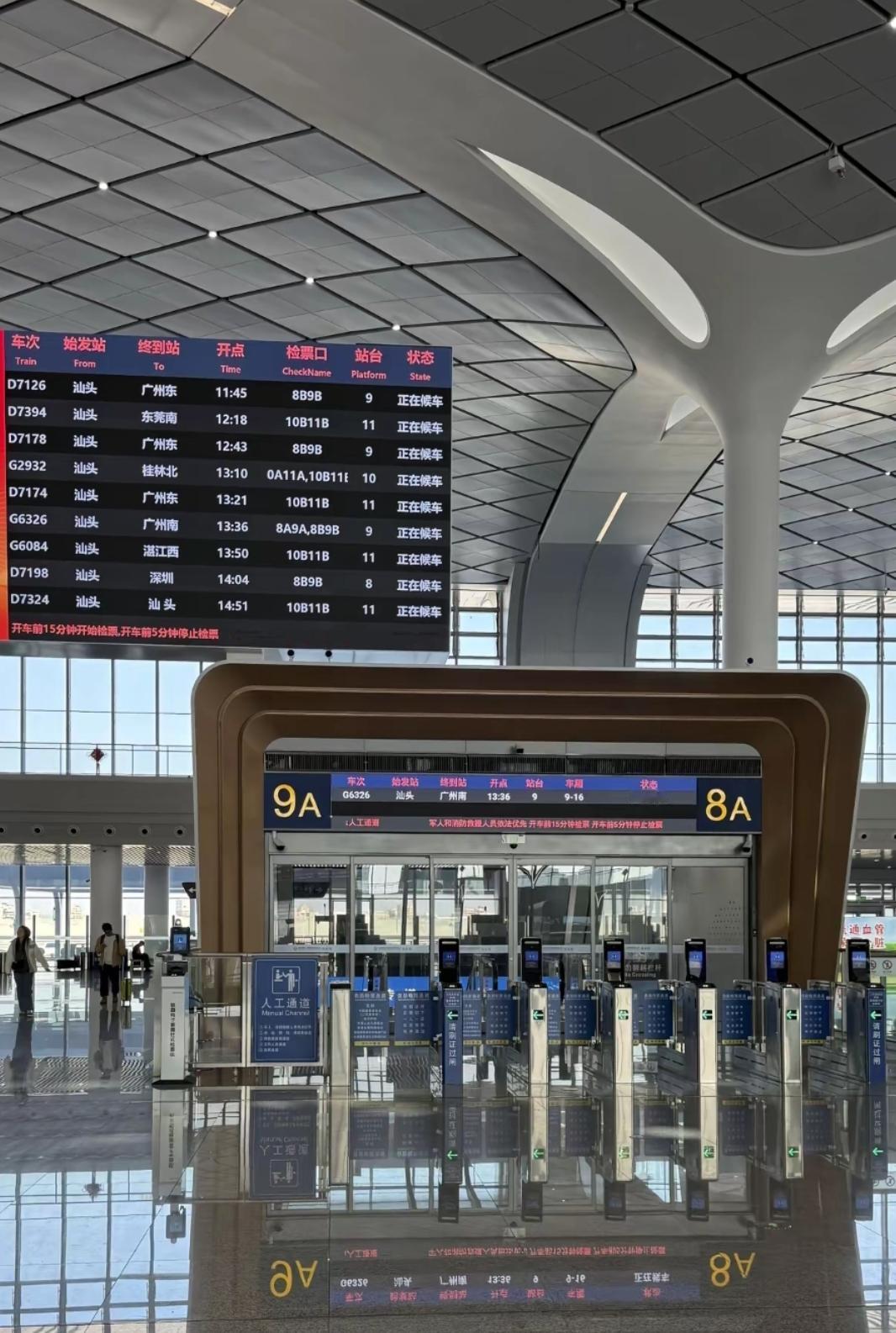 说句心里话汕头站的外观看起来比深圳北站还恢宏大气,在辽宁省的小城市很难看到这么有档次的火车站。置身其中我感觉除了广州南站之外,汕头站应该是广东省站台规模第二大的火车站。 令人疑惑不解的是如此大气的汕头站为何每日的铁路车次数量不足100趟,更令人想不懂的是为何汕头这没有直达厦门、福州的铁路列车。 相比之下站台规模较小的潮汕站铁路车次数量是汕头的好几倍,站台规模2台4线的中山站铁路车次数量也比汕头多。见此情景还是希望今后汕头站能够增加几趟铁路车次,要不然真的有些大材小用。