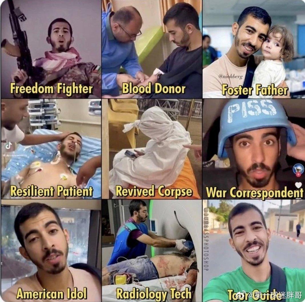 “第四次被杀了”,一个Facebook群组打趣道,将他反复复活变成了表情包。甚至连维基百科都有一节专门介绍他如何成为加沙战争假新闻的典型代表。