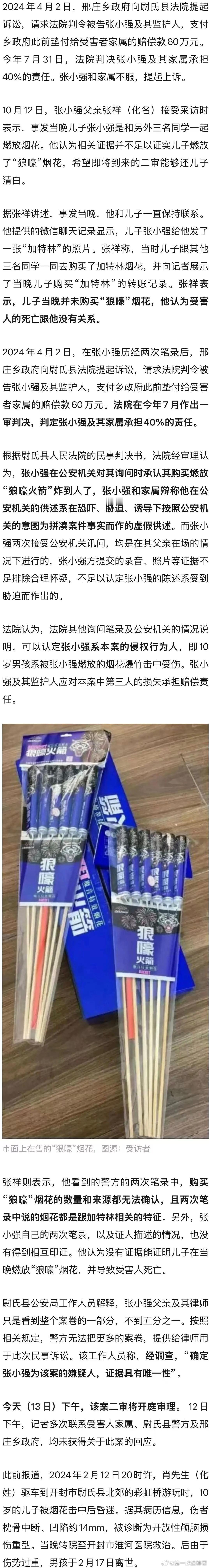 10岁男孩被烟花击中头部身亡,14岁嫌疑人被乡政府告上法庭,二审今日开庭,被告家属发声