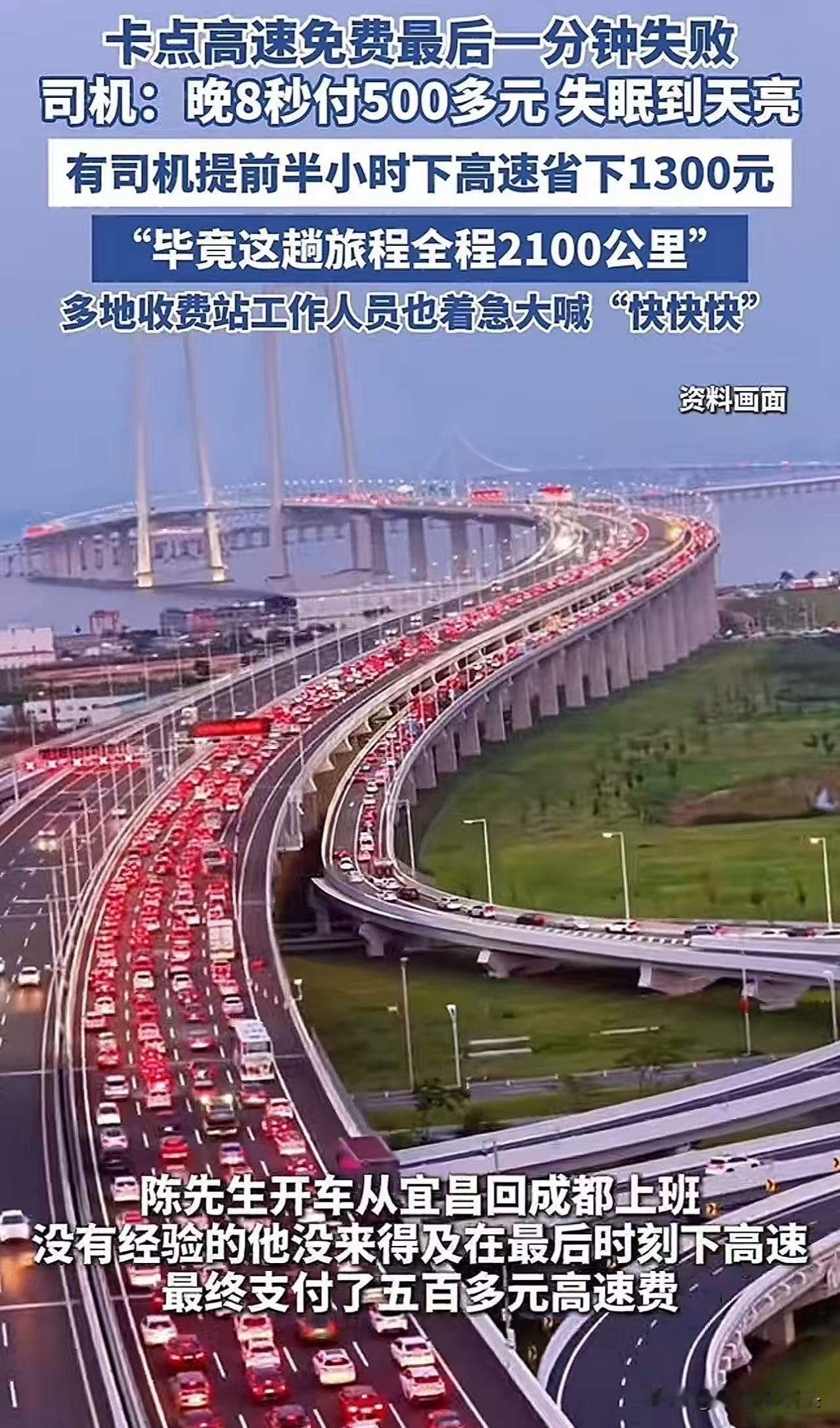 国庆高速免费最后一分钟,男子晚8秒付款500多,失眠到天亮!男子:“2天工资没了