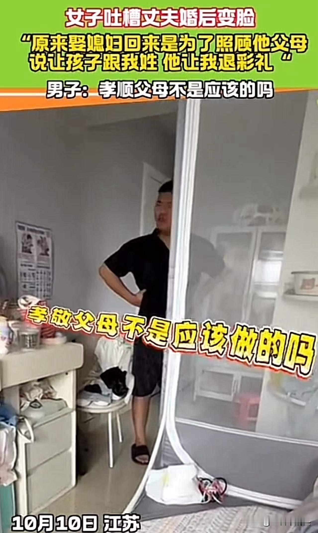 江苏:女子吐槽丈夫婚后变脸!女子:“他说娶媳妇回来是为了照顾他父母!说我不孝顺就让孩子跟我姓,让我退彩礼!”丈夫:孝顺父母不是应该的吗?而网友炸锅了,有网友说,这女的为啥网暴自己?也有网友说,男的在网暴自己才对,自己爸妈让别人照顾? 江苏一对夫妻的“婚后变脸”事件,瞬间点燃了网络热议的火药桶。女子在社交平台吐槽丈夫,称“他婚后变了脸”,理由竟然是丈夫坚称娶妻的目的就是为了照顾他父母。更令人心碎的是,丈夫还指责她“不孝顺”,要她把孩子跟自己姓,还要退掉彩礼。听到这些,许多网友都愤怒了,但争议也随之而来:有人觉得女子太敏感,为啥要网暴自己?也有人认为,丈夫的态度才是真正的问题,是不是在“孝顺”之外,忽略了妻子的感受和尊重? 这场家庭的“内战”,折射出的是我们这个时代家庭观念的巨大裂痕。有人说,孝顺父母是天经地义,但孝顺的边界在哪里?是无条件的付出,还是要有彼此的尊重?而这位女子的控诉,背后其实隐藏着一个更深层次的社会现象:家庭关系中,个人权益与家庭责任的天平,正变得愈发摇摆不定。 很多人看到这里,忍不住要问:到底什么才是真正的“孝顺”?是无条件的牺牲,还是合理的沟通与理解?这场争议,其实也折射出我们每个人内心的矛盾:在传统价值观与现代生活方式的冲突中,我们该如何找到一个平衡点?难道孝顺就意味着要牺牲自我、忍让一切吗?还是说,现代家庭更需要的是尊重与理解,而不是一味的“顺从”? 更令人深思的是,网友的反应也极具代表性。一方面,有人站在女子一边,觉得她被丈夫的“变脸”折磨得心力交瘁,呼吁关注女性权益;另一方面,也有人觉得,丈夫的“孝顺”是责任感的体现,不能一味指责。这种两极化的声音,折射出我们社会对于家庭、责任、尊重的认知差异。 这场家庭风波,或许只是冰山一角,但它折射出的问题,却关乎我们每个人的生活。家庭的和谐,不仅仅是责任的堆积,更是理解与尊重的艺术。我们都希望拥有一个温暖、互相理解的家,但这个“家”需要每个人的用心经营。毕竟,家庭不是单方面的付出,而是彼此的理解与包容。 所以,下一次,当你面对家庭中的矛盾时,不妨想想:我们是不是也在用自己的方式,定义着“孝顺”与“尊重”?而这场争论,或许正提醒我们:爱与责任,从来都不是简单的“谁对谁错”,而是需要我们用心去体会、去经营的生活艺术。 对老公的吐槽 对老公表达不满 对丈夫的看法 丈夫怒斥要离婚