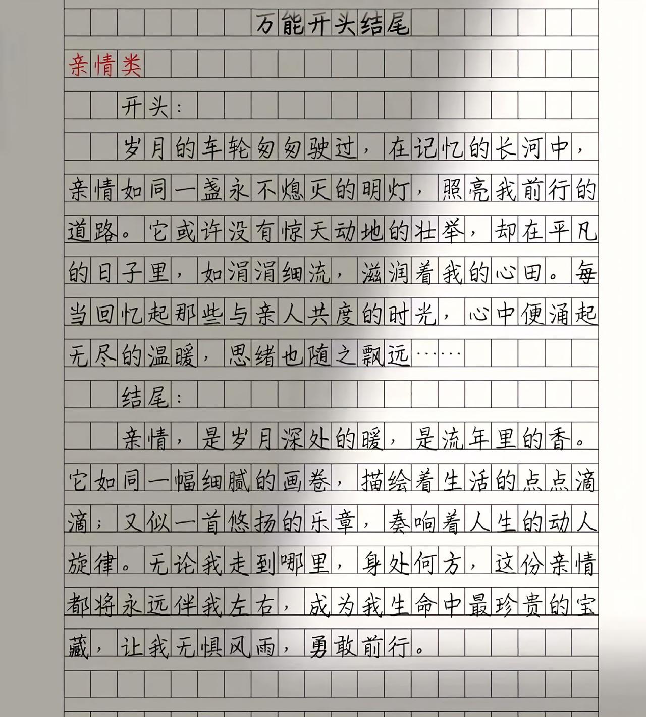 孩子不会写作文,这下真不用愁了!赶紧把下面这份万能开头结尾保存下来,涵盖亲情、人