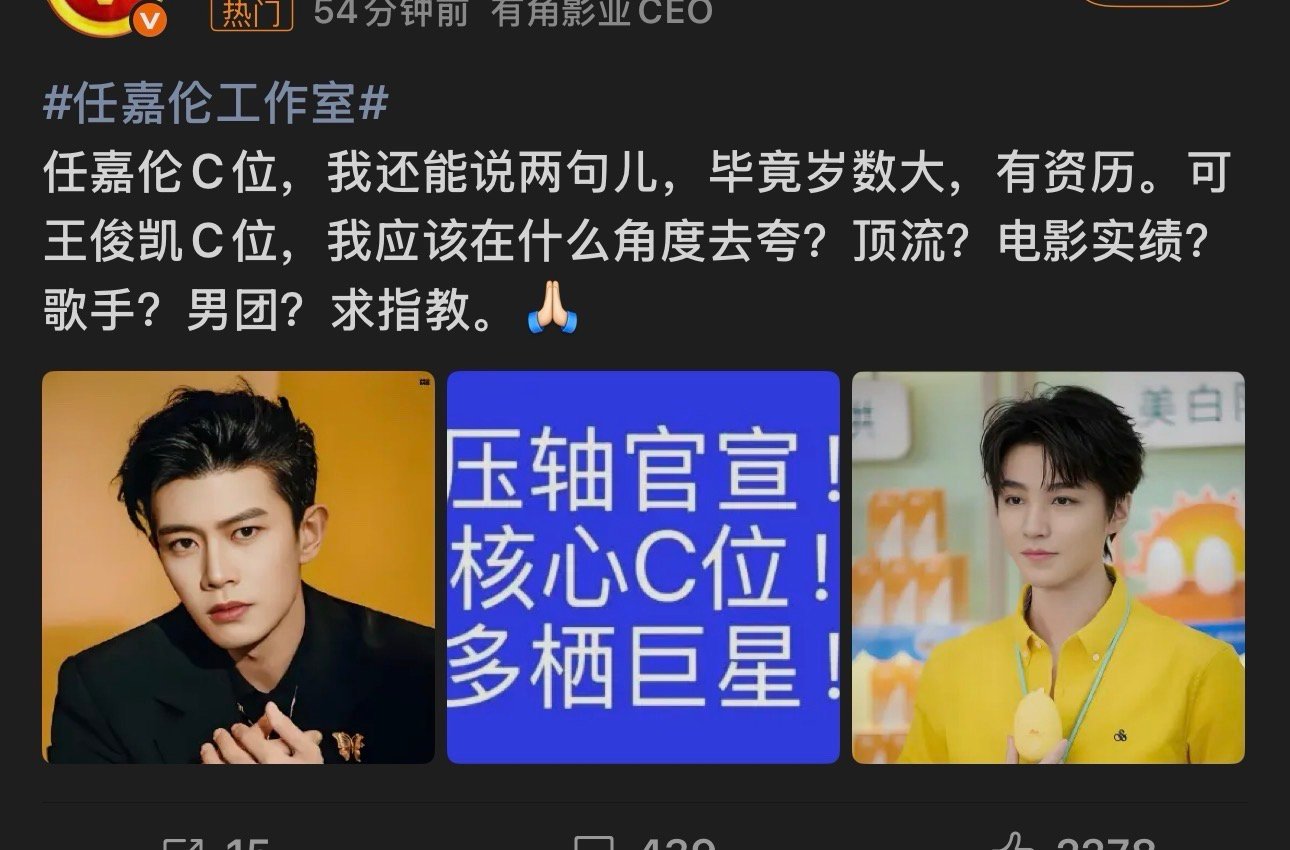 随后,任嘉伦粉丝开始维权…艾特任嘉伦工作室[思考]所以谁的资历比较老?