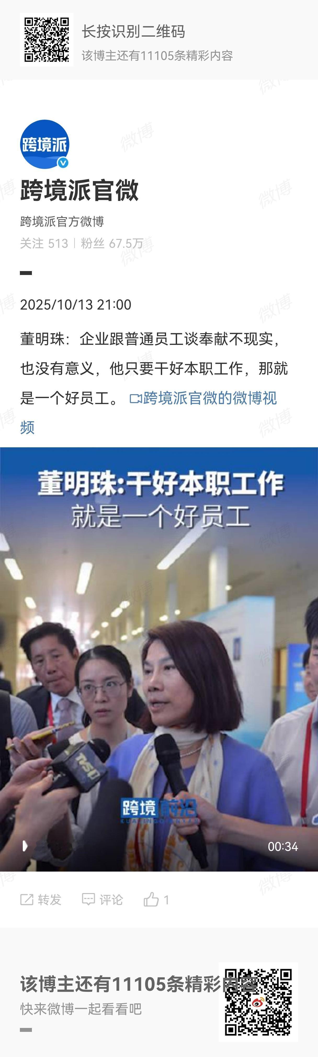 董大姐今天这句话说的很好,点个赞:企业跟普通员工谈奉献不现实,也没有意义,他只要