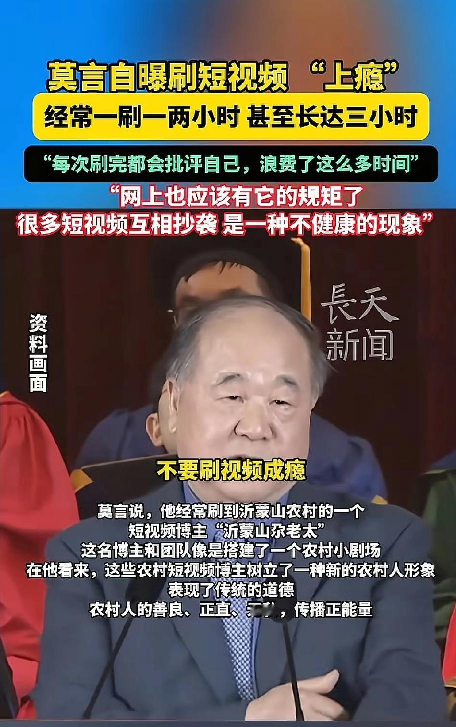 关于莫言刷短视频,我发现三个特别之处 那就是他不像普通网友刷完就忘,其他人刷完可