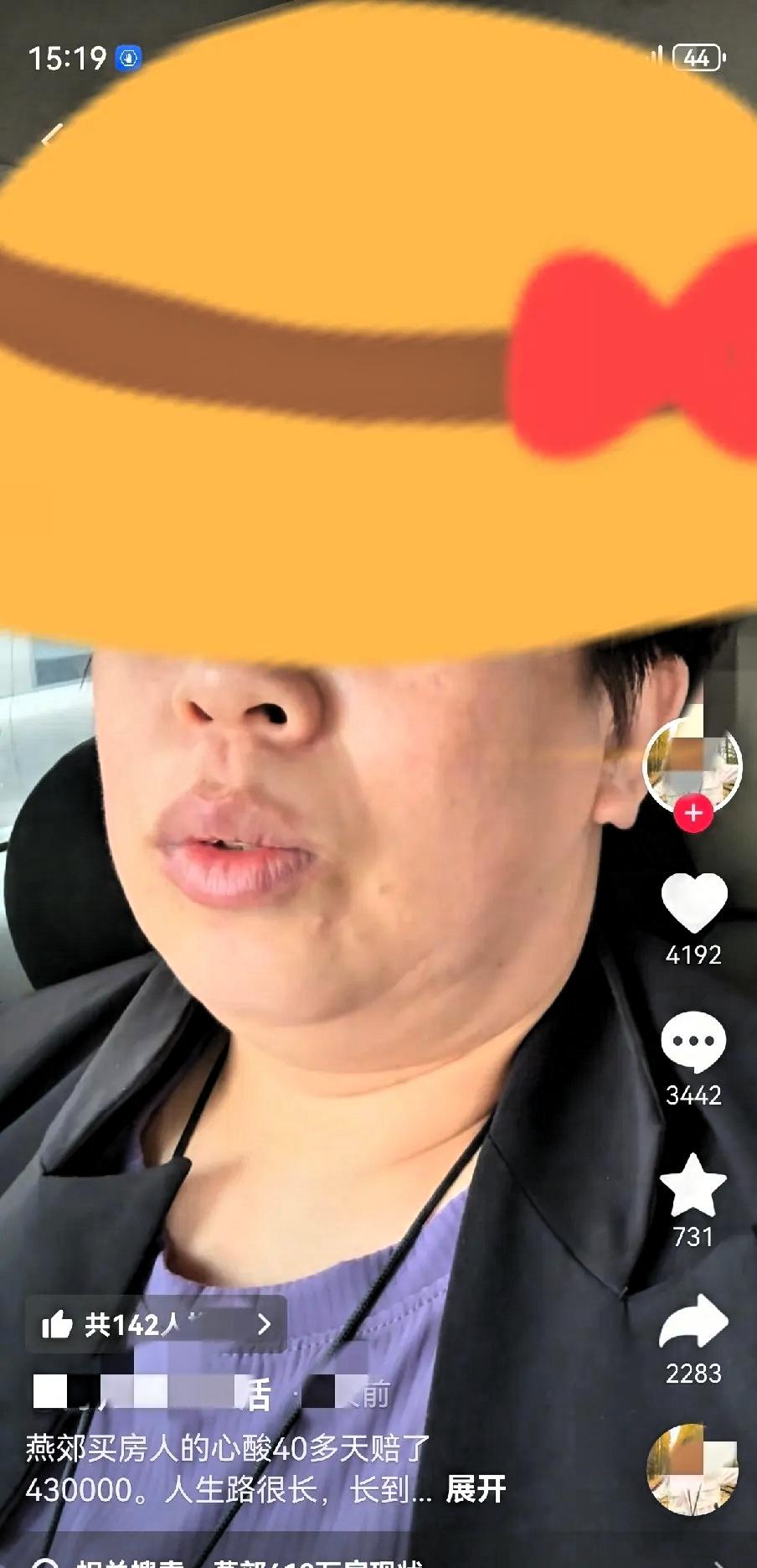 昨晚刷到一位做餐饮的燕郊大姐在控诉,40多天前刚凑钱买的新房,转头就降了43万!她让售楼部给个说法 这不是简单的数字下跌,是她天不亮就去市场采买、中午顶着油烟颠勺、晚上守店到后半夜,一点一点攒下的血汗钱,说没就没了。 谁都知道大姐不是炒房客,家里虽有夏威夷一居、林荫大道两居,可看着俩孩子挤在小房间,公婆单独住又惦记,就想换套大房子,一家老小能凑在一起吃饭说话,就这么个朴素的“团圆梦”,咋就变成了“燕郊的笑话”? 总有人轻飘飘说“房子是商品,涨跌正常”,可这话太不接地气了。普通人买房,掏的是半辈子积蓄,还得背几十年房贷,房价涨了开发商不会分半毛钱,跌了却要老百姓独自扛下所有损失,这公平吗? 之前燕郊也有楼盘猛降被叫停,说明短时间大幅降价本就容易乱市场,凭啥风险全让购房者担着? 视频里的大姐没了以前风风火火的劲儿,面容憔悴地求说法,隔着屏幕都能看见她的无助。老百姓买房图的是安稳,不是当“接盘侠”,更不是用血汗钱换委屈。 真心希望这事能有个合理结果,别让踏实过日子的人寒了心。你身边有没有人遇到过买房后大幅降价的情况?要是你碰上这事儿,除了无奈,还会试着找哪些办法解决啊?
