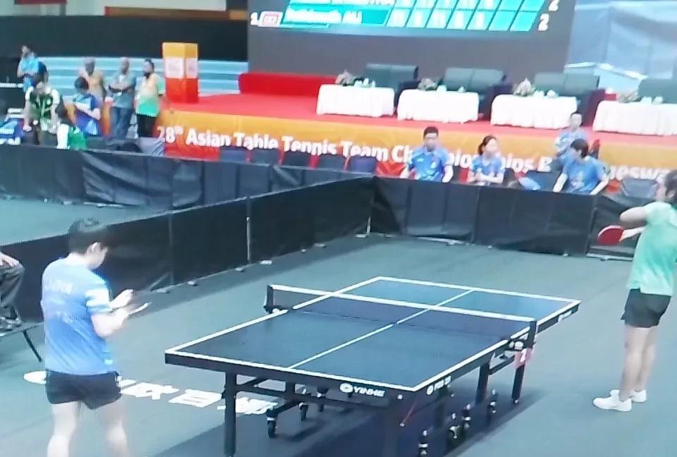 孙颖莎第二盘三局零封素塔西尼,国乒女团领先二盘,坐等蒯曼的收尾。 #秋日生活打卡记# 亚锦赛女团四强席位争夺,,国乒女团对阵泰国女团,实力还是碾压的。 但我们依然派上绝对主力,王曼昱、孙颖莎和蒯曼。 王曼昱已经三局零封了帕拉南,孙颖莎对阵素塔西尼。 场外指导:邱贻可 比赛采用五局三胜制: 第一局:孙颖莎与素塔西尼比分相继上分,7平,孙颖莎发球与正手进攻连续得分,11:7拿下。 第二局:素塔西尼4:2,相持能力不错,5:3,孙颖莎追到6平,7平,这球摆高了,被素塔西尼打回,相持得分,8平,反手连续得分,11:8,再拿一局。 第三局:孙颖莎5:2,对方叫了暂停,暂停回来,素塔西尼只能搏杀了,连续追分,孙颖莎7:5,9:7,素塔西尼快带直线真不错,但孙颖莎依然10:8,素塔西尼追到10平反超比分,发力搏杀弹网出界,11平,孙颖莎,相持得分,发球得分,13:11拿下。 这样,孙颖莎就是三局零封素塔西尼,给女团带来二连胜,蒯曼要上场,对阵吉尼帕。希望蒯曼赢下。 恭喜孙颖莎拿下素塔西尼!