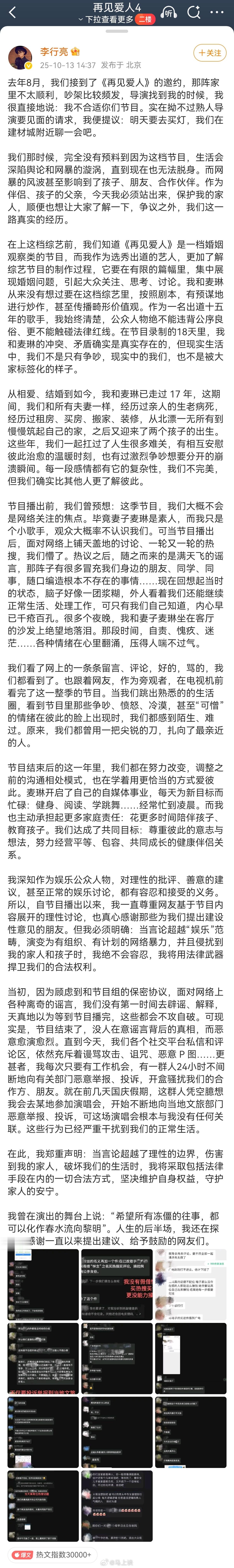 李行亮发长文维权:从没按照剧本有预谋进行炒作。给大家看看当初离谱的热搜,并分析下为什么这帮观众为什么一直不放过他俩。