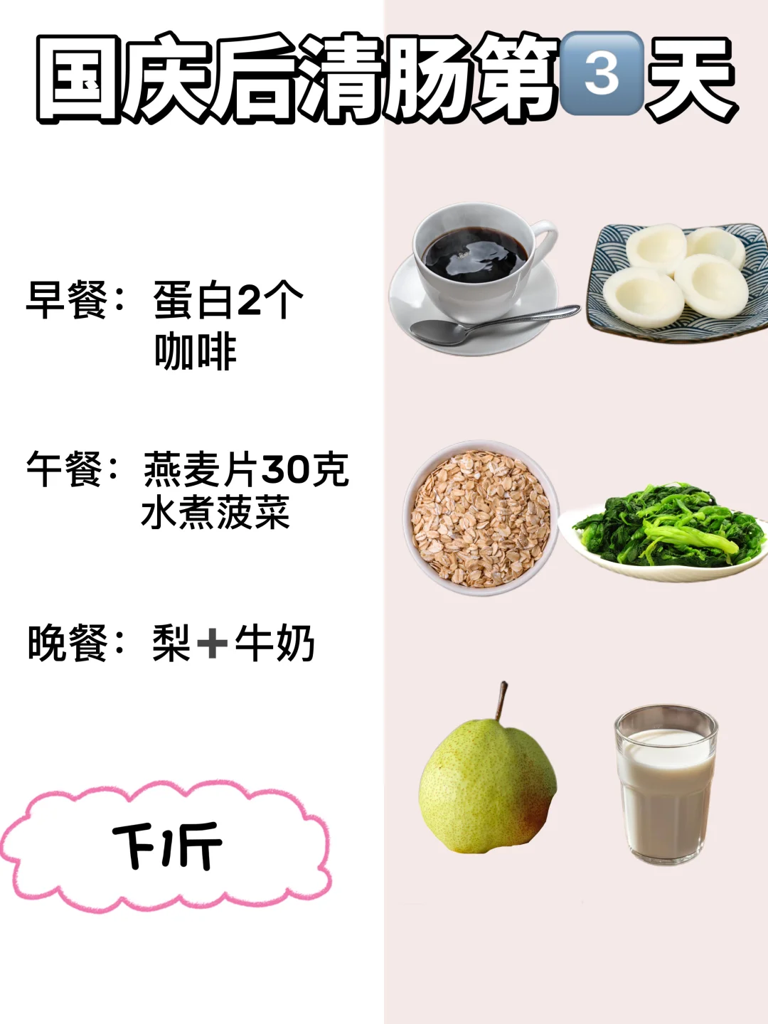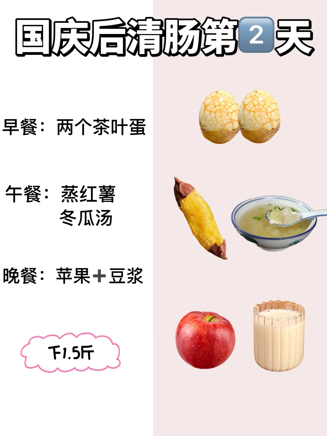 节后用这个食谱比之前还瘦了0.6斤,国庆期间吃的食物还没有转化成脂肪,用原理是清肠➕高钾,把食物残渣和储存的水分排出体外