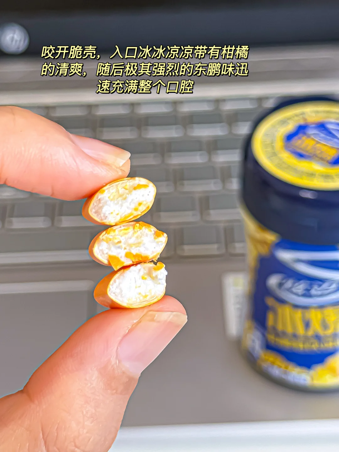 ⭐️咬开脆壳,入口冰冰凉凉带有柑橘的清爽,随后极其强烈的东鹏味迅速充满整个口腔,这个味道确实非常还原饮料了,再加上酷爽的薄荷因子,一下子就来精神了