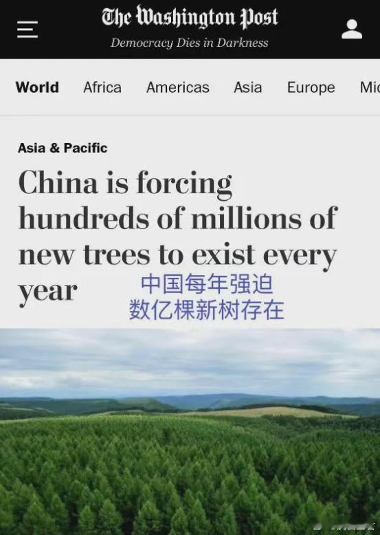 美国华盛顿邮报则诋毁我国植树造林和治沙是“每年强迫数亿株树成长”。你是不是觉得美西方是不是过于邪恶与丑陋了呢?你是不是觉得美西方过于不要脸呢?可是“更更更”的在后头,对于美西方来说,没有最坏,只有更坏。
