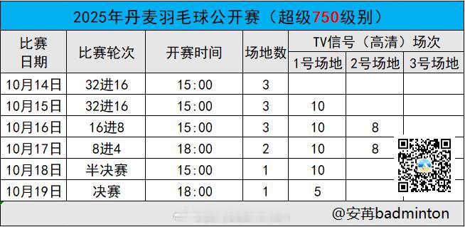 2025年丹麦羽毛球公开赛首日赛程出炉(图1)完整签表(图2)开赛时间(图3)