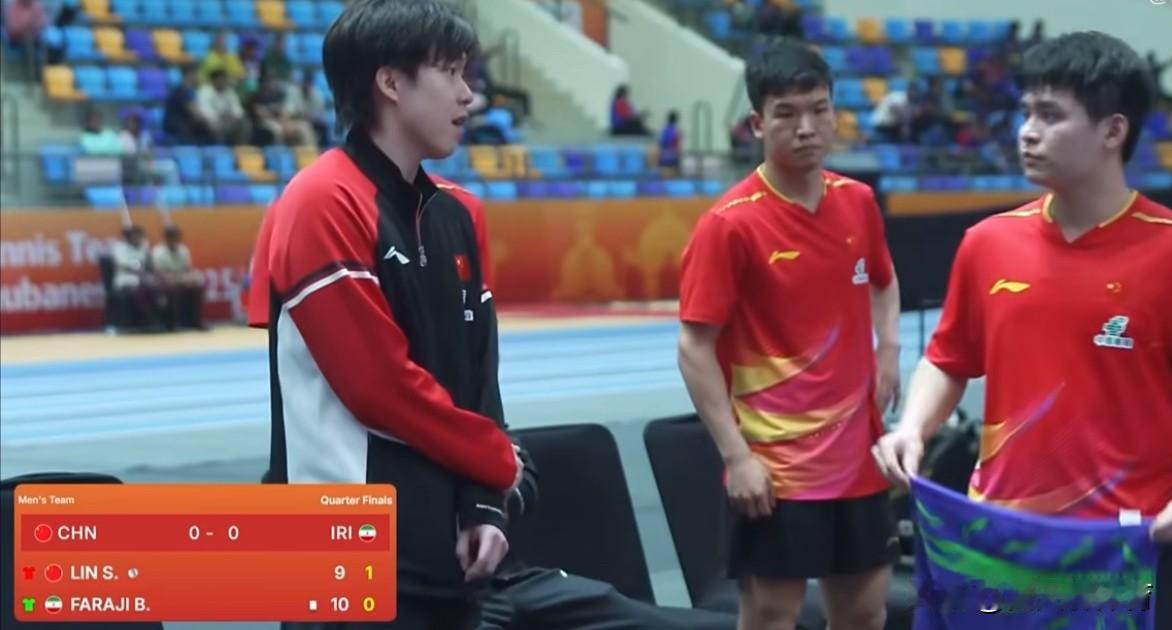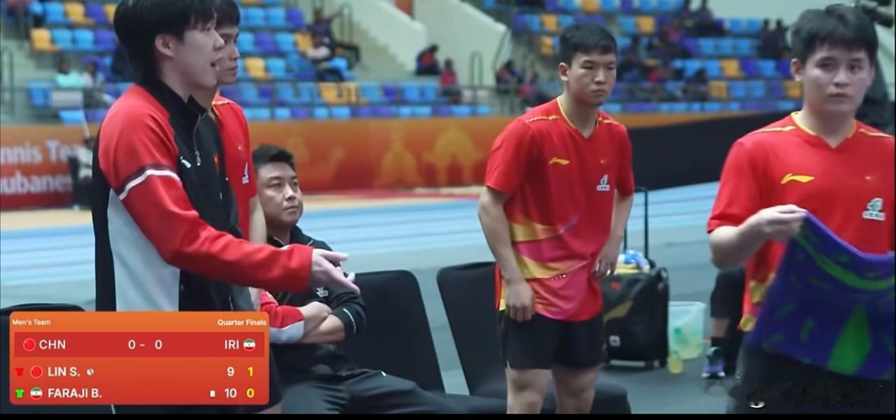 王楚钦指导上线了!昨晚上结束的亚锦赛团体赛1/4决赛,第一盘林诗栋跟本拉吉的比赛,王皓教练气得直接坐在了凳子上,一旁的王楚钦站起来,开始给小石头林诗栋做战术上的指导!王皓教练给林诗栋战术了,但是林诗栋不听劝,气得不想指导了,干脆坐在凳子上不吭声,让王楚钦去指导林诗栋!