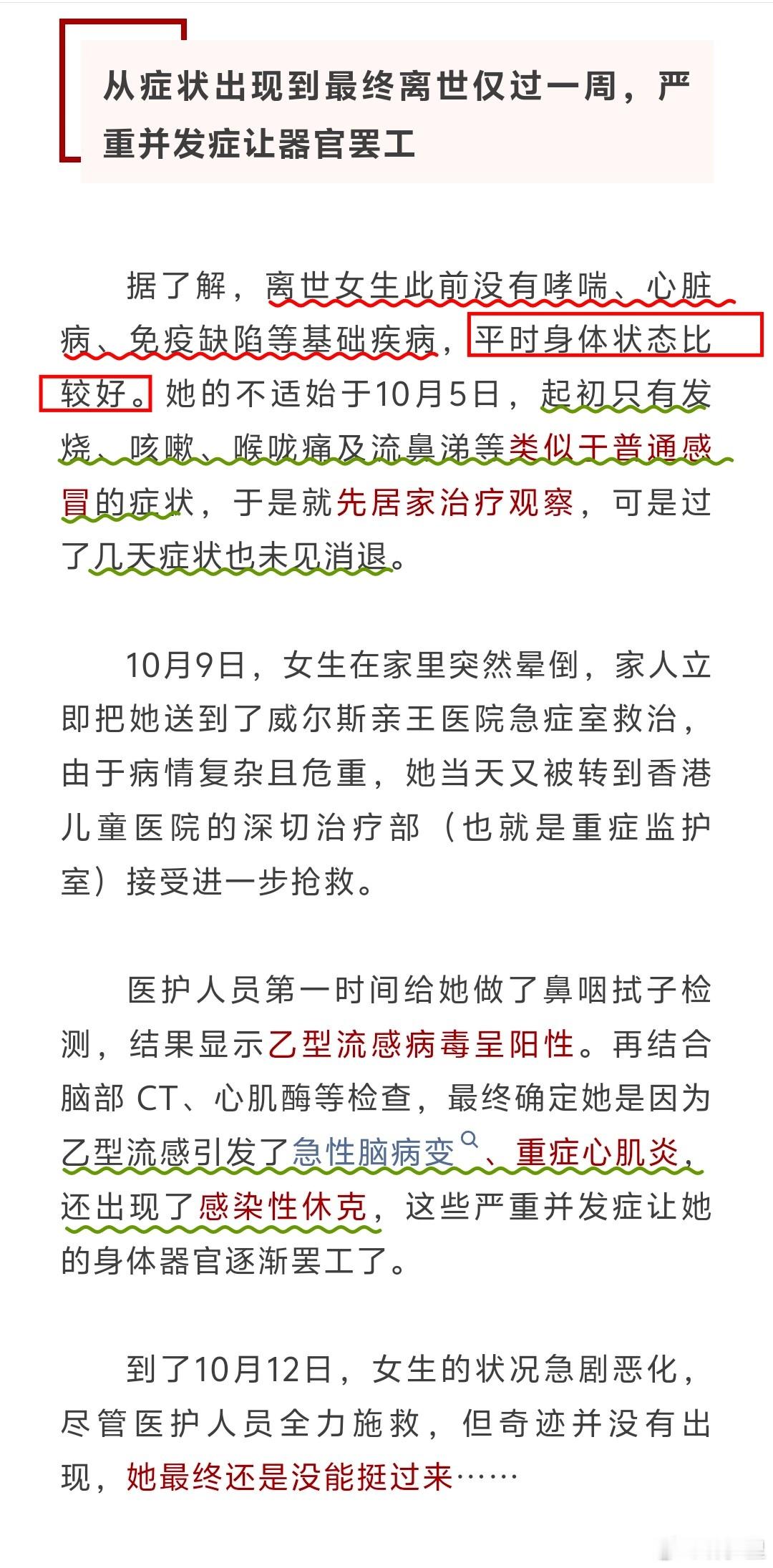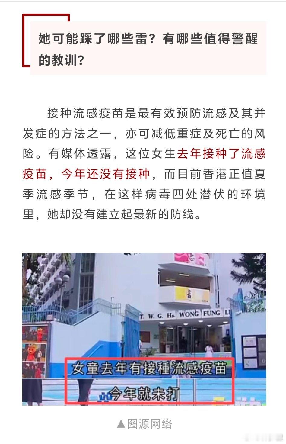 香港13岁女孩,流感病逝的一些细节。