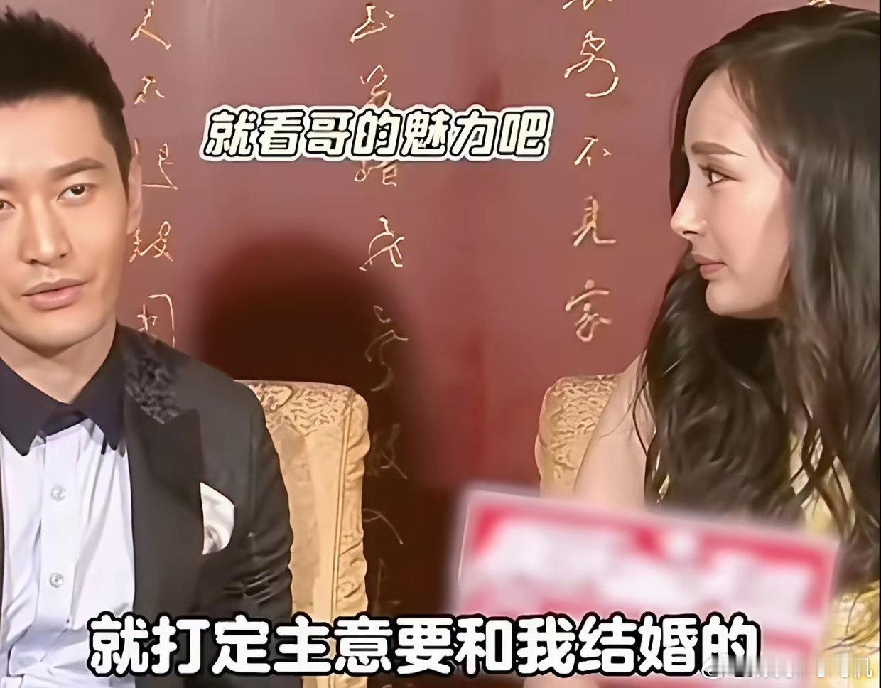 一次同台,黄晓明跟杨幂炫耀,说baby认识他的时候,就打定主意要跟他结婚。