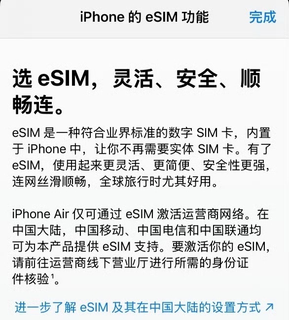 有个问题,为啥 iPhone Air 的 eSIM 需要跑营业厅开卡啊…这是啥技术难题么??[裂开][裂开]