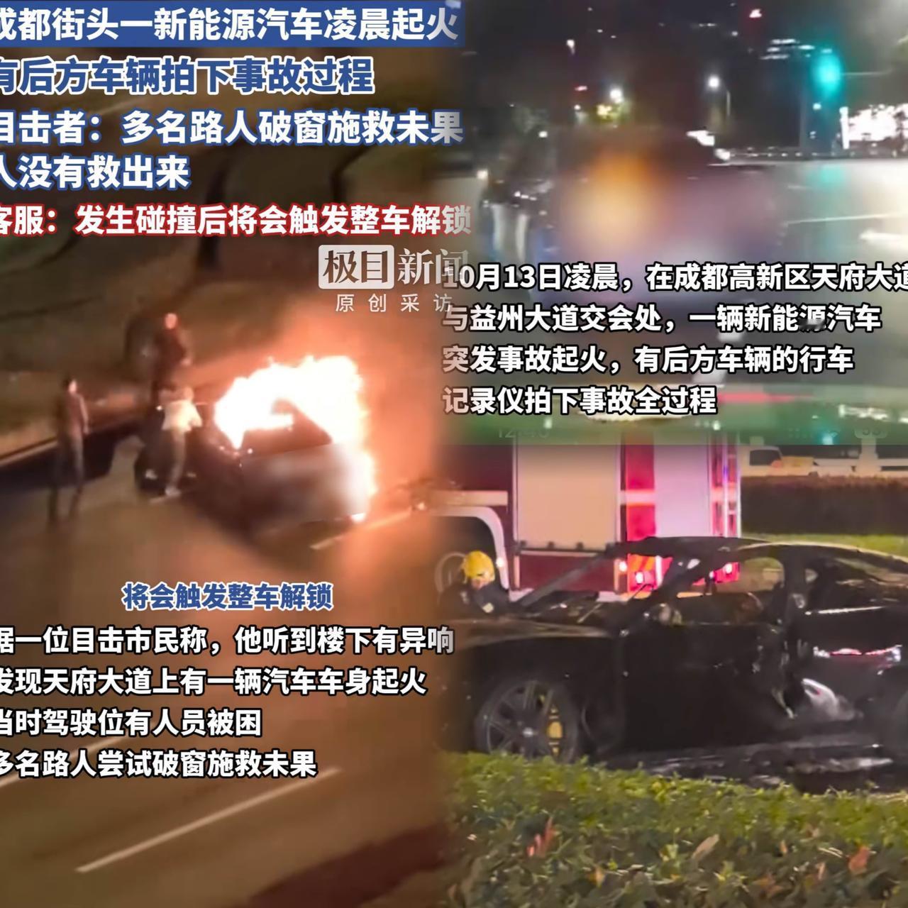 13号凌晨天府大道发生惨烈车祸,一辆小米SU7像失控的子弹般撞上绿化带,翻滚着