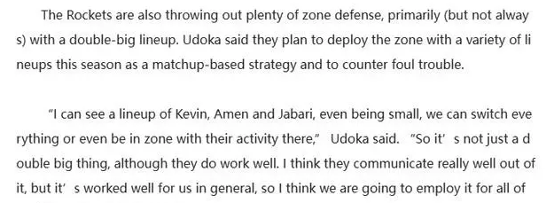 杰夫·蒂格说火箭最多34胜,连附加赛都进不了。结果不到两周,联盟数据机构把火箭