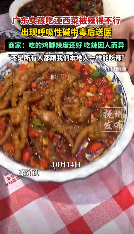“太高估自己了!”一广东女生去江西看望自己的姐姐,从外地赶来,姐姐自然要带她下馆子吃点特色菜,没想到,女生吃完后突然发生手麻、肢体颤抖的情况,送到医院急救被告知是呼吸性碱中毒,幸运的是在病床上休息了几分钟便基本恢复了。 据抚州发布10月14日报道,事情是这样的,这个广东姑娘好不容易盼来了假期,就想着去江西找姐姐玩,姐姐自然是高兴坏了,妹妹大老远跑来,肯定要带她去吃点好的,体验一下本地的特色。 于是,姐姐就领着妹妹去了一家在当地口碑很不错的小炒店,点菜的时候,姐姐心里还特别惦记着妹妹的口味。 她知道广东人普遍吃得清淡,不太能吃辣,所以特意嘱咐店家,菜尽量都做成不辣的,但转念一想,来江西不吃点辣的,那不等于白来了吗? 于是,在征求了妹妹的意见后,就点了一道稍微带点辣味的招牌菜,想着让妹妹尝尝鲜,在姐姐和店家看来,这道菜的辣度顶多算是“微辣”,是江西人饭桌上最常见的开胃菜。 可谁也没想到,就是这道在本地人眼里的“微辣”菜,却成了这次意外的导火索,菜一上桌,香气扑鼻,姑娘看着很有食欲,就夹了一筷子放进嘴里。 刚开始还没觉得怎么样,可没过一会儿,一股猛烈的辣意就从舌尖直冲天灵盖,她瞬间感觉自己的嘴巴像着了火一样,额头上也开始冒汗。 为了缓解这种灼烧感,她下意识地开始大口大口地喘气,想要吸入更多的冷空气来降温,姐姐看她脸色不对,赶紧递过去一杯水。 姑娘咕咚咕咚喝了好几口,但那种辣劲儿非但没下去,反而越来越强烈,紧接着,更吓人的一幕发生了,姑娘突然感觉自己的手指头发麻,然后这种麻木感迅速蔓延到整个手臂,甚至连腿都开始不自觉地颤抖起来。 她想说话,却发现自己头晕目眩,连话都说不清楚了,姐姐一看这架势,彻底慌了神,赶紧扶住摇摇欲坠的妹妹,大声呼救。 饭店老板听到动静也立马跑了过来,一看姑娘的情况,像是有点经验,立刻判断说可能是辣得太厉害,呼吸太快导致的。 老板一边安抚着慌张的姐姐,一边赶紧找来一个干净的塑料袋,让姑娘罩在口鼻上,对着袋子呼吸,同时,旁边的好心食客也帮忙拨打了急救电话。 很快,救护车赶到,把姑娘送到了最近的医院,经过医生检查,诊断结果出来了——“呼吸性碱中毒”。 医生解释说,这病听着吓人,其实就是因为姑娘被辣到后,情绪紧张加上身体不适,导致过度换气,她呼吸得太快太深,把身体里过多的二氧化碳都排出去了,破坏了血液里的酸碱平衡,这才引起了手脚发麻、头晕颤抖这些症状。 幸好发现和处理得都比较及时,在医院的病床上躺下休息,放缓呼吸后,姑娘的症状很快就缓解了,没过多久就恢复了正常,身体也没留下什么问题。 姐妹俩这才松了一口气,真是虚惊一场,事后,姐姐带着康复的妹妹回到饭店准备结账,心里还有点不好意思,觉得是自己没照顾好妹妹,给店家添了麻烦。 没想到饭店老板一看到她们,就关切地询问姑娘的身体怎么样了,还非常豪爽地摆摆手说:“人没事就好!这顿饭就算我请了,你们大老远来一趟,遇到这种事,我心里也过意不去。” 老板这个温暖的举动,让姐妹俩感动不已,这件事传到网上后,引起了很多网友的热议,有网友评论说:“江西的辣真不是开玩笑的,那是一种能钻进灵魂里的魔法攻击,广东的朋友没经过专业训练,千万别轻易尝试。” 还有人分享了自己的类似经历:“我一个自以为很能吃辣的北方人,去江西出差,第一顿饭就被一道‘微辣’的炒粉干趴下了,辣得我眼泪鼻涕一起流,感觉人生都受到了洗礼。” 确实,我们国家的饮食文化博大精深,天南地北口味差异巨大,广东人习惯的是清淡养生,讲究食材的原汁原味,而江西菜则以鲜辣醇厚著称,那种辣是深入骨髓的香辣、咸辣。 这种口味上的巨大差异,对于一个人的身体来说,就是一次严峻的考验,身体已经习惯了几十年的清淡饮食,肠胃和神经系统都处于一种“和平”状态,突然遭遇这种高强度的辣椒刺激,就像往平静的湖水里扔进一颗炸弹,不炸出点水花才怪呢。 所以说,出门在外,无论是旅游还是探亲,品尝当地特色美食是必须的,但一定要对自己的身体有一个清醒的认识。 尤其是在挑战那些以“辣”闻名的地区美食时,千万别太高估了自己的承受能力,你以为的“能吃一点辣”,和当地人眼中的“微辣”,可能根本就不是一个概念。 小尝一口可以,但千万别逞强,否则很可能美食没尝到,先进了医院,那就得不偿失了。 信源:抚州发布2025-10-14——广东女孩吃江西菜被辣得不行,出现呼吸性碱中毒后送医,商家:吃的鸡脚辣度还好,吃辣因人而异