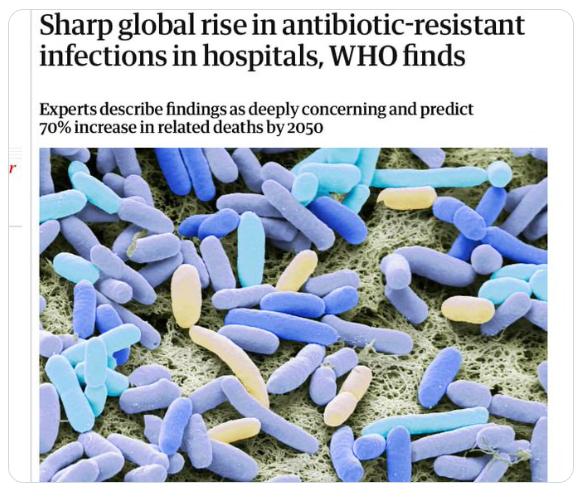 【世卫组织发出警报——世界正在失去对感染的防御能力】据《卫报》报道,超过 40% 的抗生素对血液、肠道、泌尿道和性传播疾病的常见感染不再有效。 在医疗体系薄弱的低收入国家,情况尤为严重。在亚洲和中东,目前三分之一的感染病例对抗生素有耐药性,在非洲,这一比例为五分之一。 医生警告说,到2050年,此类感染导致的死亡人数可能会增加70%。
