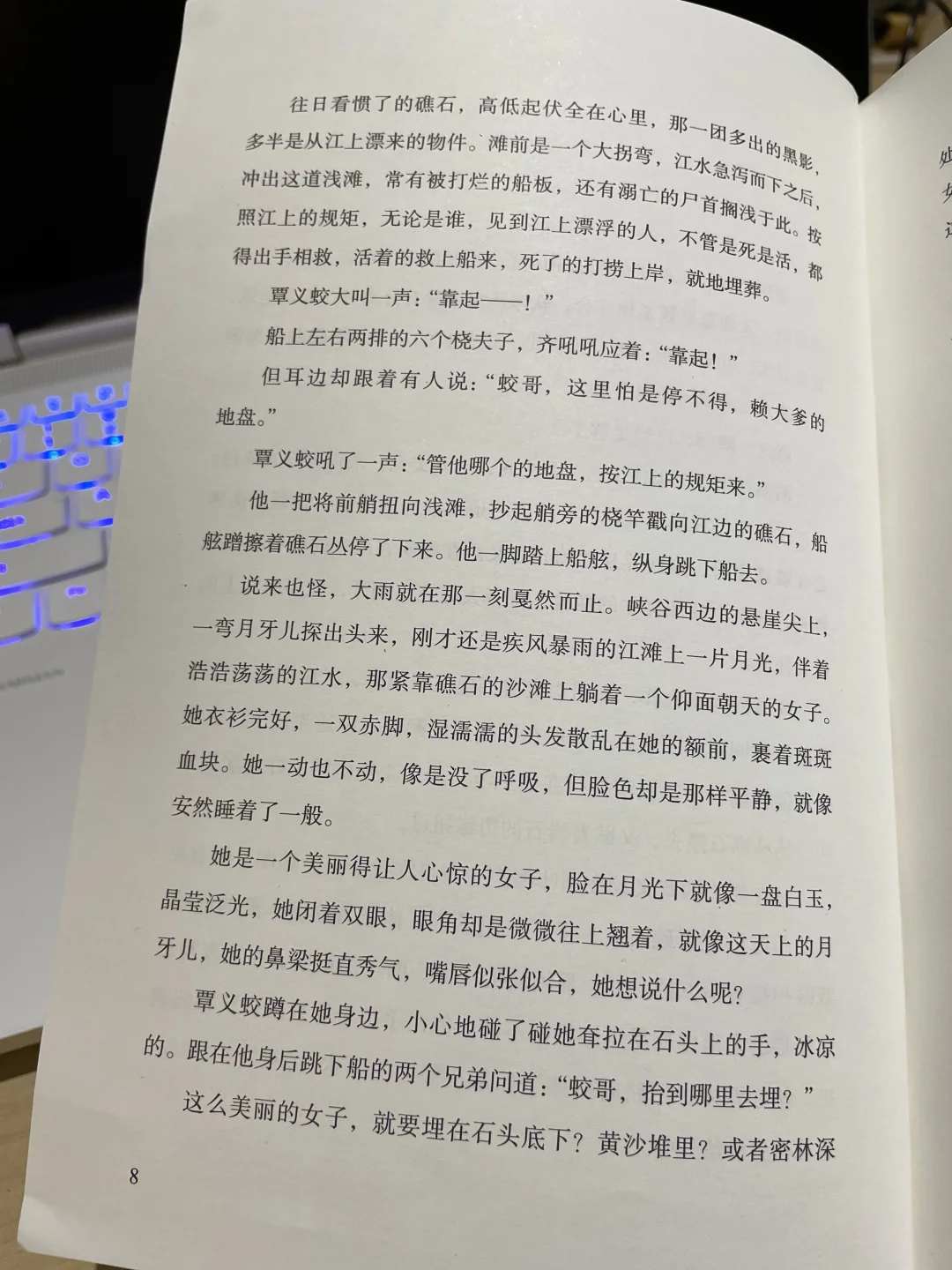 作者叶梅老师曾说:“我是喝长江的水、听峡江的号子声长大的。书中青滩边的川江号子的响起,有巴楚文化的根脉,更有中华民族在苦难中的凛然不屈