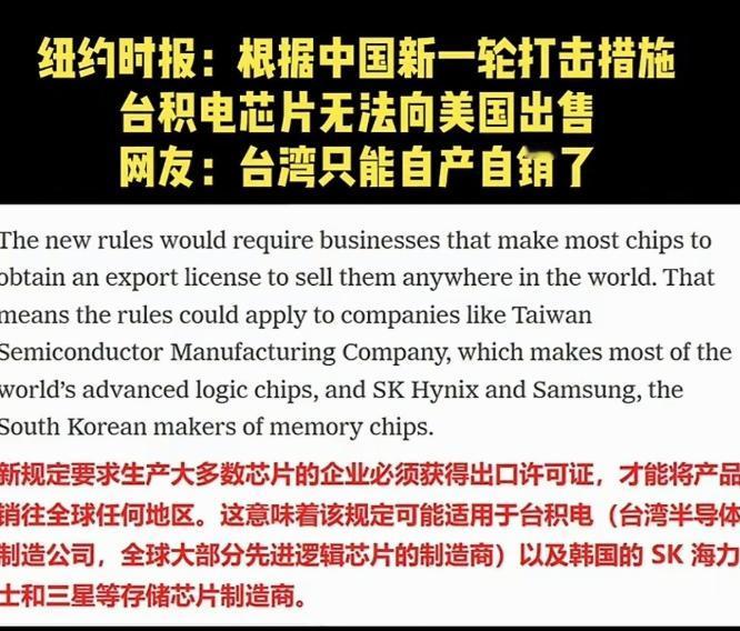 纽约时报:根据中国新一轮稀土管制打击措施,台积电的芯片无法向美国出售。 纽约时报的解读确实说到了点子上,这事儿压根不是什么危言耸听,而是戳破了台积电这类企业的“软肋”。 得搞明白一个关键常识,稀土这东西可不是普通的土,是17种金属元素的统称,在芯片里的作用堪比“心脏零件”,用量不多但没它真不行。 芯片制造里把硅片磨到原子级平整的环节,就得用稀土里的二氧化铈磨料,14nm以下的高端芯片根本绕不开,光刻机里那些能实现纳米级精度运动的部件,核心也是钕铁硼永磁体,这里面的钕和镝全是稀土元素,单台EUV光刻机就得装几十公斤这种磁钢,缺了它机器就是个废铁。 台积电作为全球芯片代工的龙头,日子早就被稀土攥在手里了。它生产3nm芯片最急需的镝元素,92%都得从大陆买,这种重稀土做的零件每72小时就得换一批,断供一天生产线就得停摆。 这次中国稀土管制升级,直接把规矩亮明了:不管是原产于大陆的稀土,还是境外用中国技术生产的稀土产品,只要终端产品里中国稀土占比超过0.1%,出口就得申请许可,逐案审批。 这个0.1%的阈值低得离谱,随便一个含稀土的芯片组件都能达标,台积电的芯片根本不可能绕过去,等于说它想卖芯片,就得先过中国这一关。 之前有人想耍小聪明,把中国稀土运到巴基斯坦港口再转卖给台积电,结果刚到港口就被查了,咱们新上线的稀土追踪系统从开采到加工全流程都能盯到,想绕道门都没有。台积电也不是没试过自救,赶紧找澳大利亚矿企签协议,想把海外采购比例从10%提到30%,还联合日本企业研发无镝磁体,可现实太骨感。 海外矿场挖出来的都是粗矿,得精炼才能用,而全球92%的稀土精炼产能都在大陆,别人想建一条生产线,没10年时间和几百亿美元根本搞不定,就算建起来,成本也比大陆高40%以上。现在台积电的14nm以下产能已经受影响,原本计划扩产的2nm制程也只能推迟,这就是没有稀土“粮草”的后果。 更有意思的是,受影响的不止台积电,连荷兰光刻机巨头ASML都急了,他们的设备里全是稀土,激光器、磁铁这些核心部件都离不开,现在正急着排查稀土来源,出货都已经延迟了好几周。要知道ASML可是台积电的“命根子”,它一延迟,台积电的产能更没法保证。 这就形成了一个连环套:中国管稀土,ASML出不了货,台积电造不了芯片,美国想拿芯片也得等。之前美国动不动就用技术搞长臂管辖,说含美国技术的产品就不能卖给中国,现在中国不过是用自家的资源立规矩,本质上就是对等回应,算是把美国的玩法学明白了,只不过换了个“稀土版本”。 日本和韩国的芯片企业更尴尬,三星、SK海力士之前跟着美国对中国芯片制裁得挺起劲,禁售设备、封锁技术不留死角,现在他们的芯片里同样有中国稀土,想出货也得申请许可,就算想求情都没地方说,规矩就是规矩,没情面可讲。台积电创始人张忠谋以前还扬言“如果美国想扼杀他们,中国真的无能为力”,现在面对稀土管制,直接没了声音,这前后反差也是挺讽刺的。 毕竟再牛的技术,没有原材料都是白搭,就像英国《金融时报》说的,美国卡脖子不让吃饭,总不能指望中国还把粮食喂到嘴边。 其实这事儿根本不是什么“激进打压”,就是把资源的主动权攥在自己手里。 中国之前对稀土管控没这么细,有些企业靠稀释成分、境外加工规避监管,现在设0.1%的阈值,就是堵上这些漏洞。而且管制也分用途,民用的合规申请都能过,重点卡的是那些别有用心的用途,算是既守住了底线,又没把路堵死。 那些跟着美国起哄的企业现在该明白,产业链的命门不一定在技术图纸里,可能就藏在一块不起眼的稀土矿石里,之前制裁别人有多欢,现在求着要原材料就有多狼狈。 这波稀土管制说白了就是场话语权的博弈,美国之前总觉得掌握技术就能说了算,把芯片当武器到处卡脖子,现在终于碰到了“软钉子”。 稀土这东西中国不仅储量大,还掌握着最核心的精炼技术,这可不是短期能替代的,全球产业链早就被绑在这条船上了。以前是中国被动接招,现在主动出牌,用美国熟悉的规则反击,既合理又有力。 资源在手,规矩才能算数,这才是真正的产业链底气,不是靠嘴硬就能得来的。