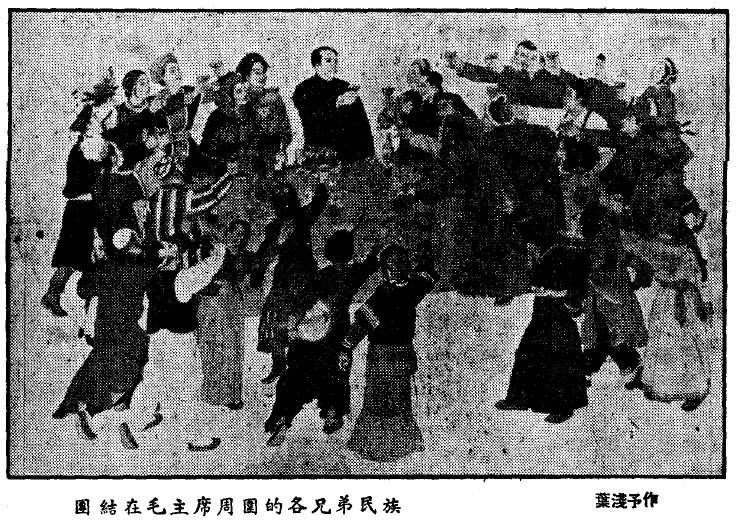 老版宣传画:团结在毛主席周围的各民族兄弟,叶浅予 作