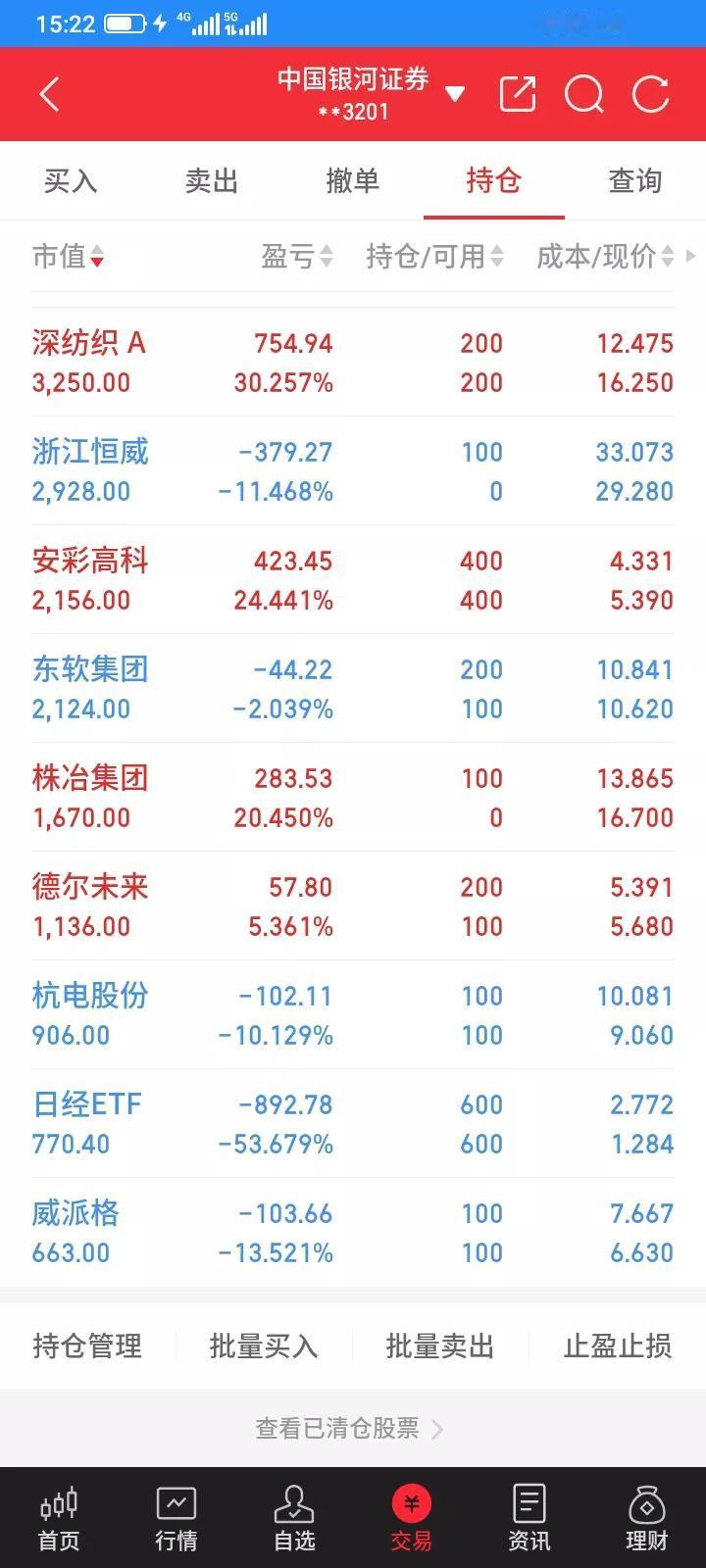 2025.10.14,昨天晚上中介安排我今天早上5.40左右在南头等车去江门做周结,包吃包住,在江门做一个星期,想想也不错,但是今天早上却告诉我,没有谈好,取消了,然后安排我到附近的一家工厂做日结,8点上班,安排我折纸箱,放一个泡沫,包装产品,真空保鲜桶,也不累,做到中午11.30下班,说下午1点上班,在外面吃了一个快餐10块钱,在路边休息到下午1点,然后去上班,但是厂里又说,下午不包装了,我们两个人就没有事做了,可以回去了,虽然气愤,上午不说,下午不用来了,偏要下午才说,浪费一个多小时,也只能忍气吞声的离开,3.5x15=52.5元,除掉吃饭,只剩下42.5元。 昨天跌下去的股票,收盘拉起来,还是没有用,今天又都冲高回落,重新跌回去,早上两只股票涨停,多只股票大涨几个点,但是都是虚假诱多,很快都跌下来了,深纺织封板一段时间,又多次打开,最终没有封住涨停,反正只有200股,还赚一点钱,继续持股待涨。德尔也没有封住涨停,收盘才上涨一点点,收出一个带长上影的阴线,收盘以5.68元补仓100股。 运达高开高走,再创新高,然后冲高大幅回落,跌到最低价,条件单以最低价19.58止损了100股,卖在地板上了,少卖了两百多块钱,卖掉之后就上涨了,错了就算了,先缓一缓。 恒威也大跌,触发了止损条件单以29.64清仓止损了100股,亏了将近400块钱,还是不甘心失败,收盘以29.26买回来100股。 株冶也是再创新高,然后冲高回落,下跌中触发了止损条件单以16.86清仓止损了最后100股,少卖了100多块钱,收盘以18.70又买回来100股。 今天创业板大跌,下跌中以2.996,2.968,2.941分别补仓100股,没有及时止损,亏回去了500多块了,下跌再不断补仓,总是会上涨的吧。 收盘以1.284再补仓100股日经。 今天总市值达到4.26万元,总资产回到5.15万元,今天总体账户大亏613元,好几天做日结赚的一天就亏掉了。休息一段时间吧,天天做日结也是替别人做的。进厂日结工 电子厂日结工 东莞日结 麻涌日结工 横沥镇日结工 鹤山日结工 东莞桥头日结工