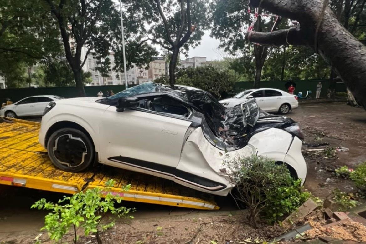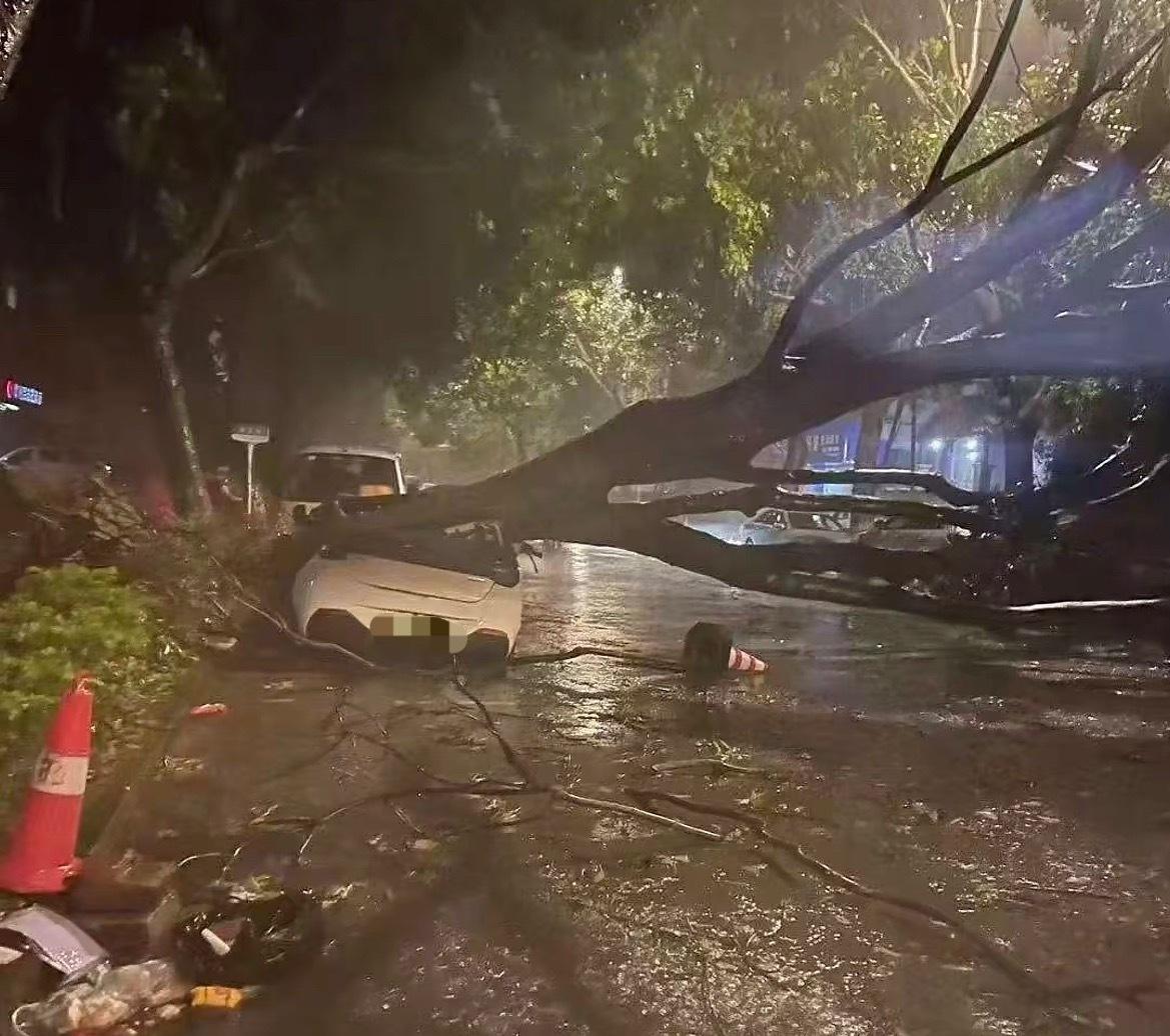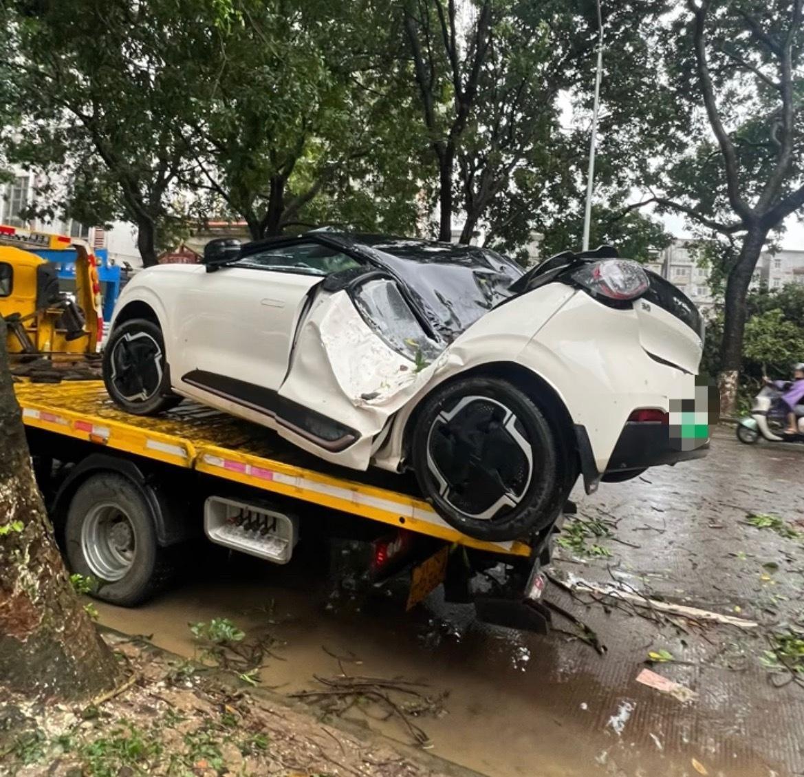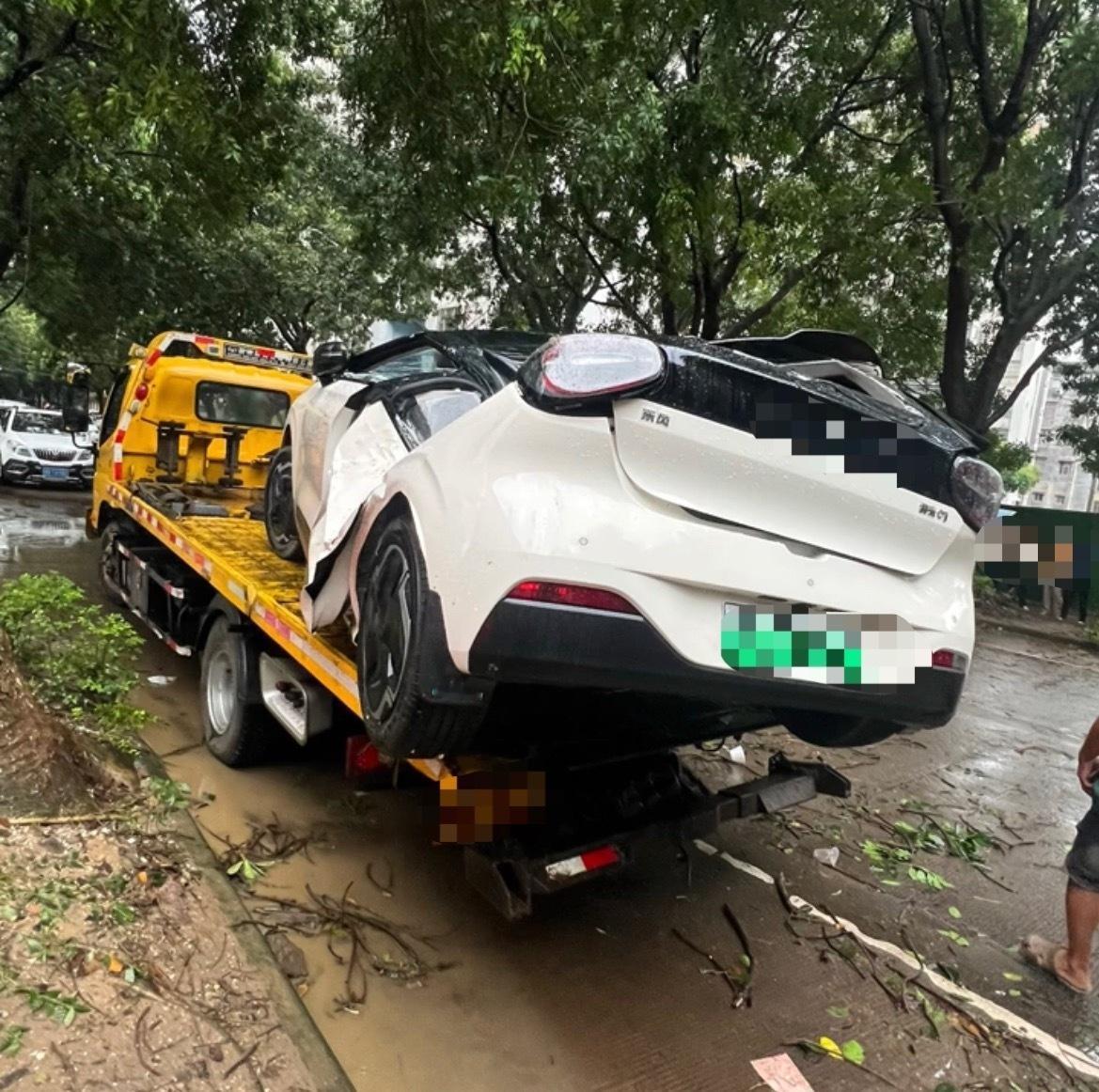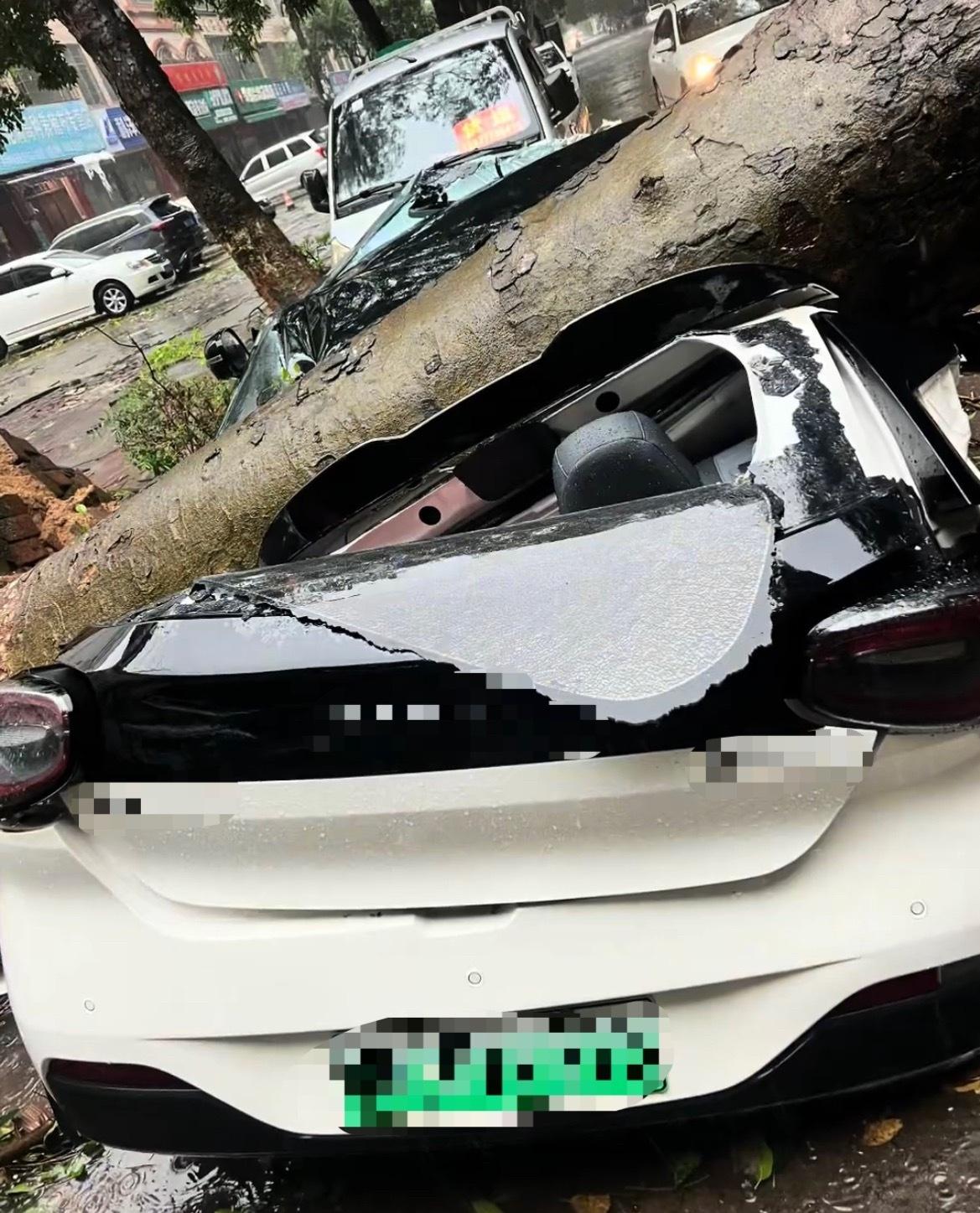 【钦州大树倒塌压扁旁边的新能源小车】 10月6日,网友爆料称:广西