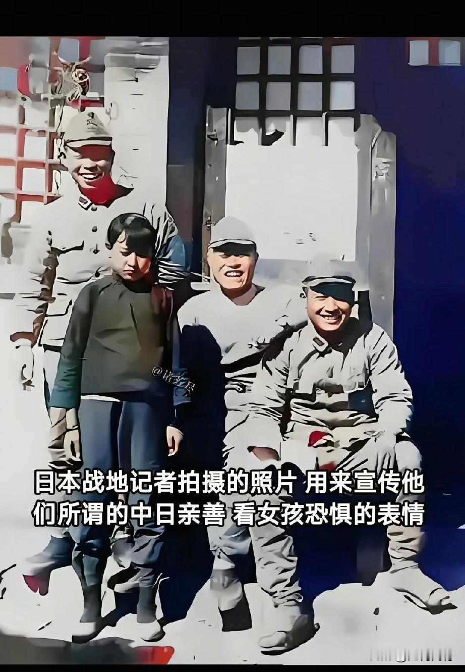 女孩站在三个日本鬼子面前,还被这三个日本鬼子强迫一起合影留念,女孩的心情是可想而知的,它非常的紧张,非常的害怕,连镜头都没有敢看一眼,不知道最后这三个日本鬼子能放过这个女孩吗?以日本鬼子的狡诈和残忍,真是非常为这个女孩担心,但这些都已经成为了历史,女孩最终的命运如何无从晓得,但是日本鬼子丑陋虚伪的一面,通过这张照片,我们还是看到了!