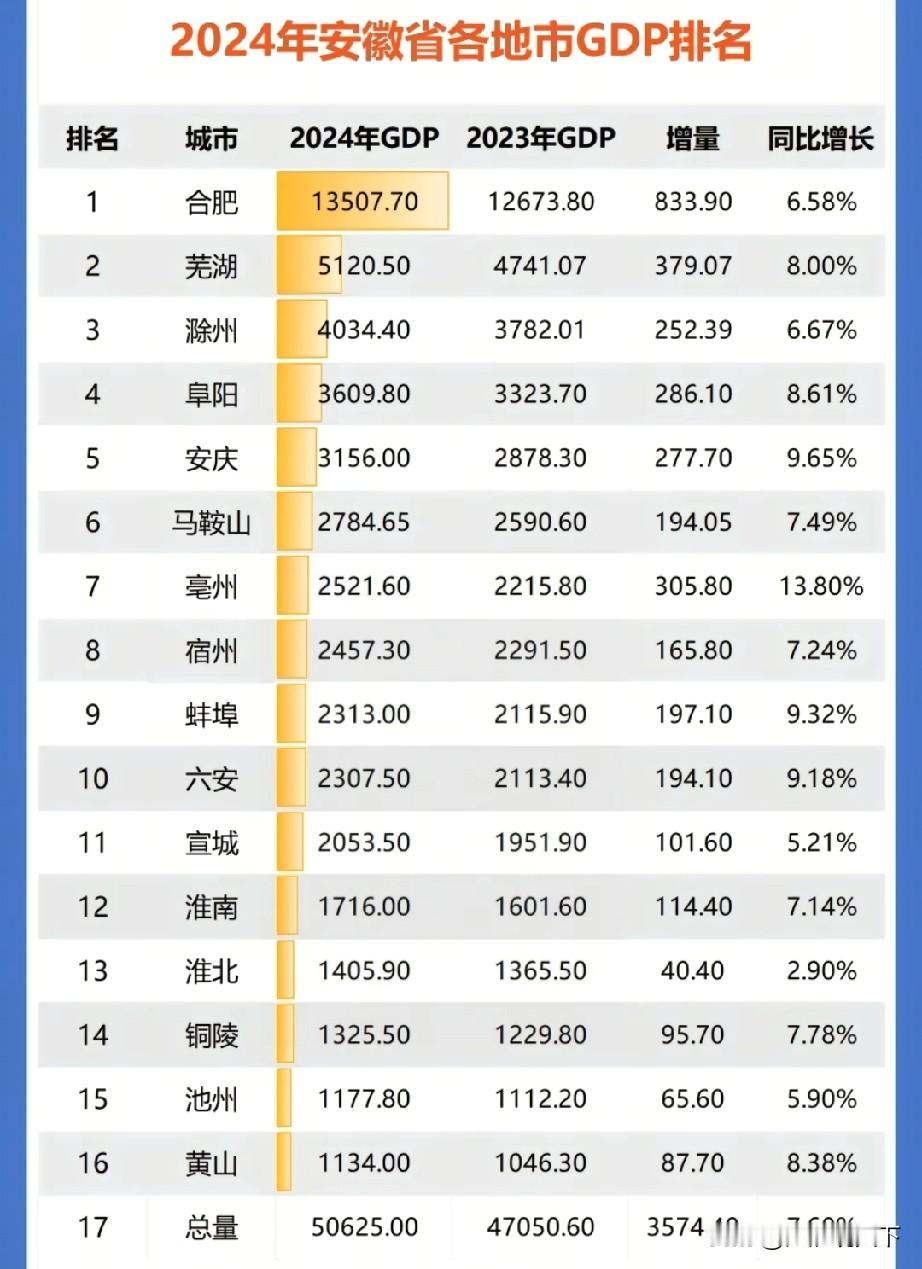 合肥加芜马滁gdp总量超安徽省一半以上,真以为高层看不到吗? 最近几天,沪苏浙皖三省一市发改委共同编制发布的《建立健全都市圈同城化发展体制机制,提升长三角城市群一体化发展水平行动方案》正式下发。 这份文件又再次掀起民间讨论,主要集中在两个关注点,一个是长三角内6大都市圈,为什么徐州都市圈会落选?另外一个就是安徽总体经济水平与江浙沪还有差距,会不会安徽地位提升太高了? 网友们都看到的问题,高层那么多智库难道看不出来?徐州落选的原因我不得而知,也不去做猜测,但是合肥都市圈上位,说明高层很清醒,合肥加芜湖马鞍山滁州的gdp总量是25438亿,占比安徽gdp总量一半以上,也就是说合肥,芜湖,马鞍山,滁州4市创造了安徽一半以上的经济总量,其中芜马滁又同属于合肥,南京都市圈,只要4市经济发展没问题,安徽经济就能带动起来。 安徽其他12市还需要再等等,该种地的种地,搞旅游的搞旅游,那些天天喊着安徽在长三角凑数的人,高层看的到,看的懂,比大家都聪明。安徽合肥 安徽经济排名 安徽经济实力 合肥现状 合肥经济增长 安徽城市竞争力