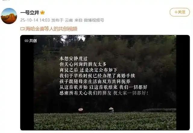 #10月14日李亚鹏官宣离婚你怎么看# 李亚鹏官宣和海哈金喜离婚,