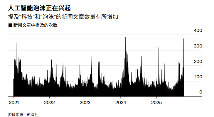 分析方面,根据美国银行的调查,创纪录比例的全球基金经理表示,在今年的猛烈上涨之后,人工智能相关股票已处于泡沫之中。在十月的调查中,约54%的受访者认为科技股估值过高,这与上月近半数人否认这一观点的结果形成鲜明对比。与此同时,全球股票被高估的担忧也在本次调查中触及峰值。