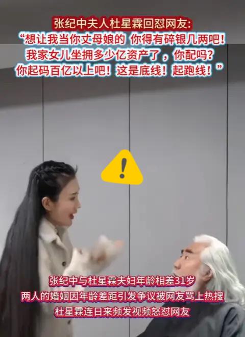 张纪中夫人杜星霖最近在社交平台回怼网友,一句话直接炸了锅:想让我当你丈母娘的你得