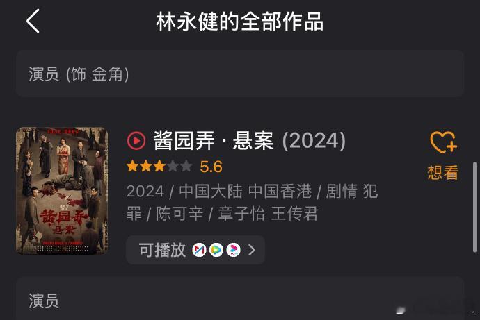 林永健参演的作品林永健参演长津湖酱园弄生万物林永健参演过许多作品,其中《长津湖