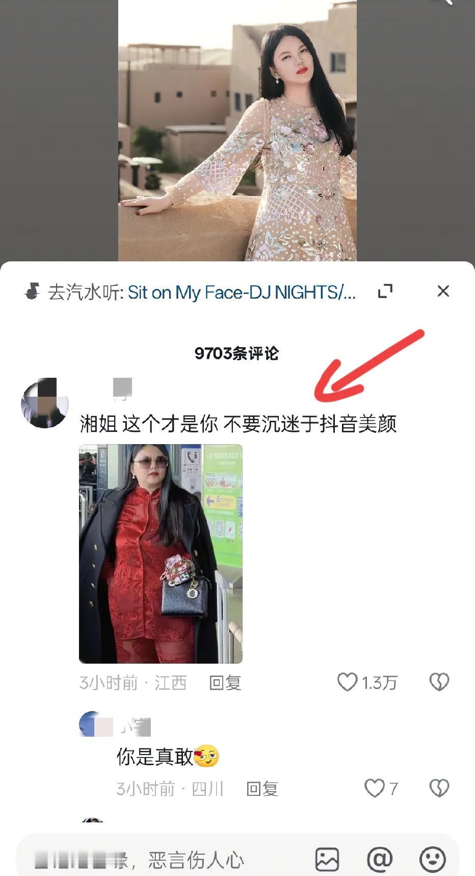刚又刷到湘姐的抖音,晒了好几张美照,一打开评论区,天塌了……网友们也太勇敢了,直