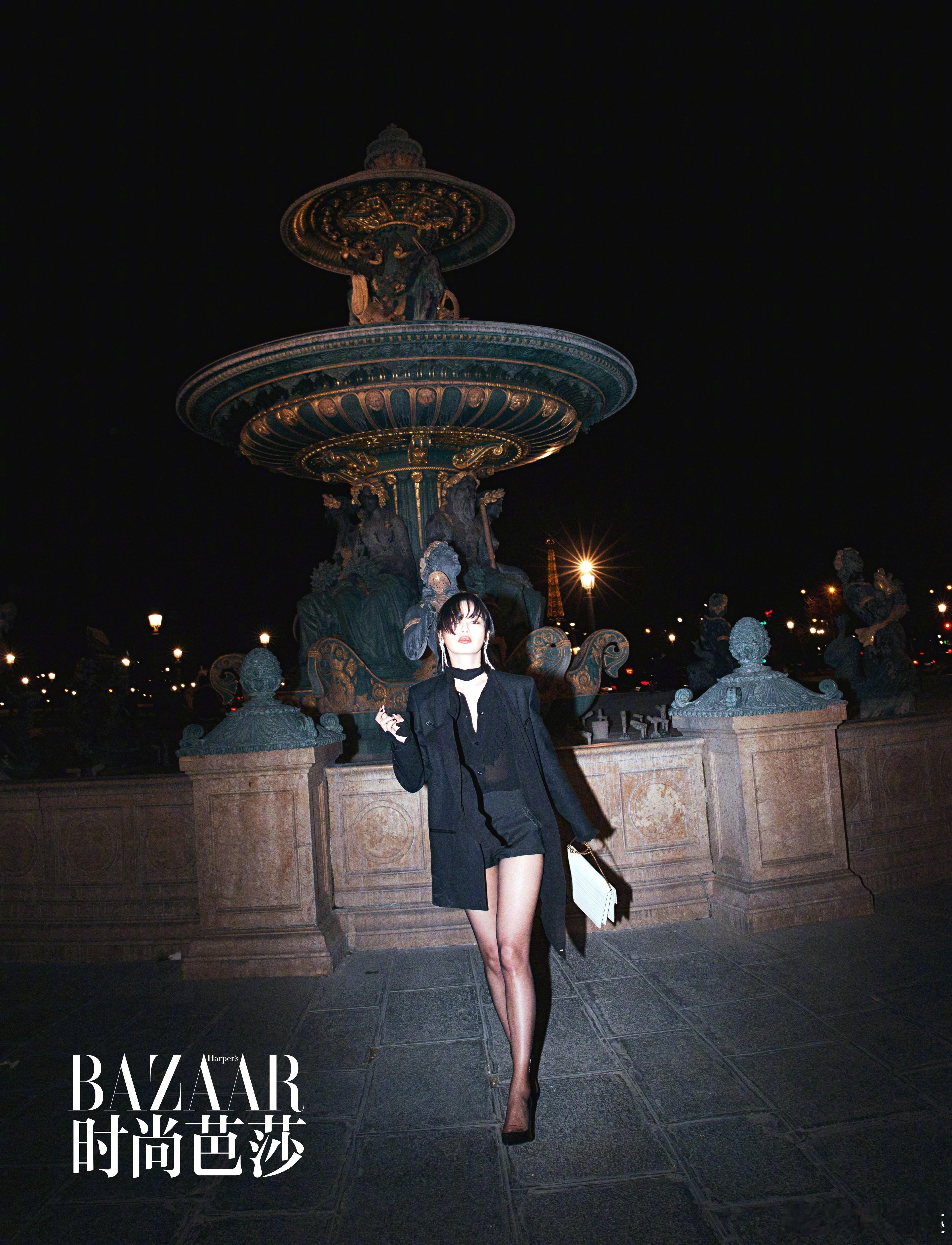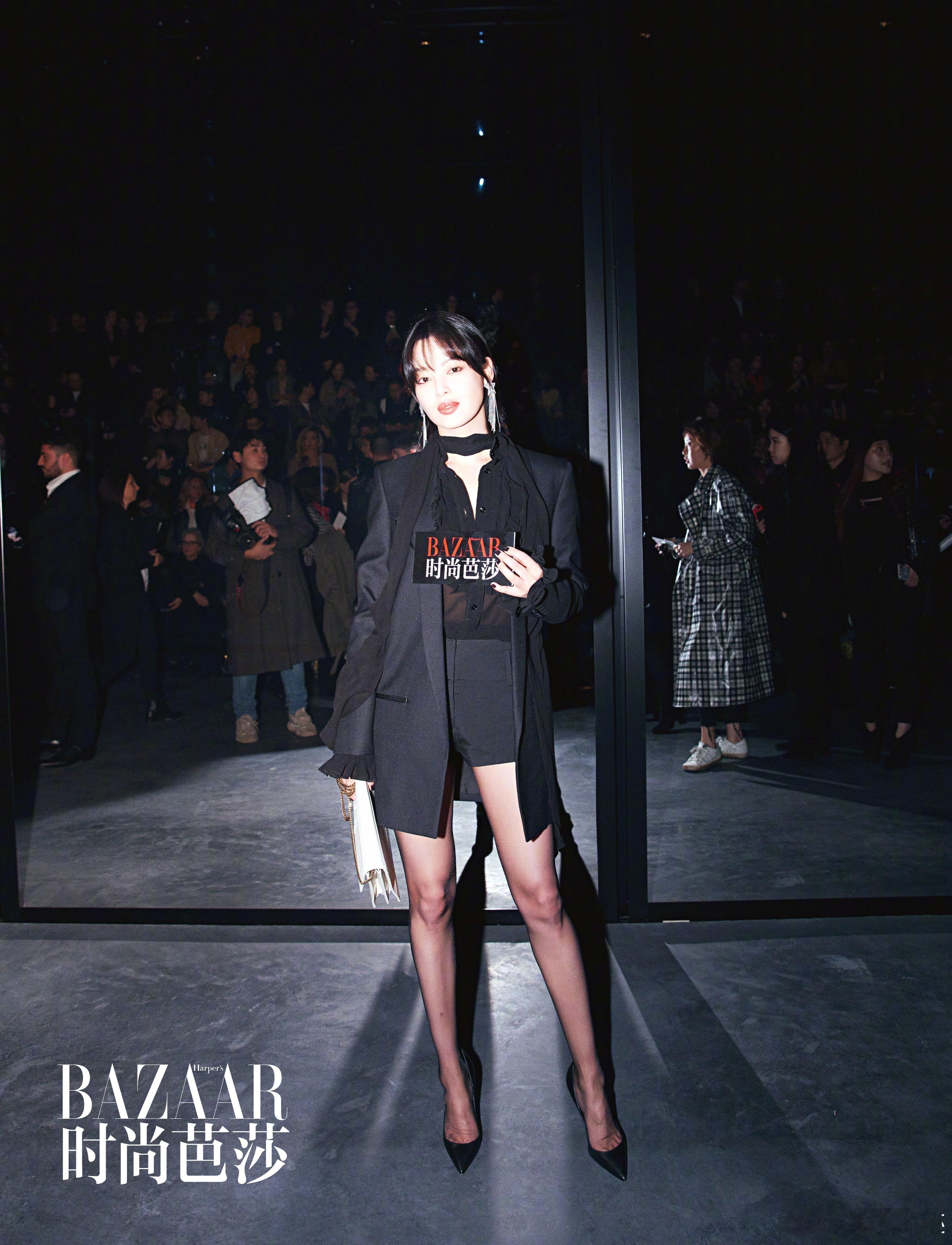 辛芷蕾巴黎时装周黑丝西装美丽迷人