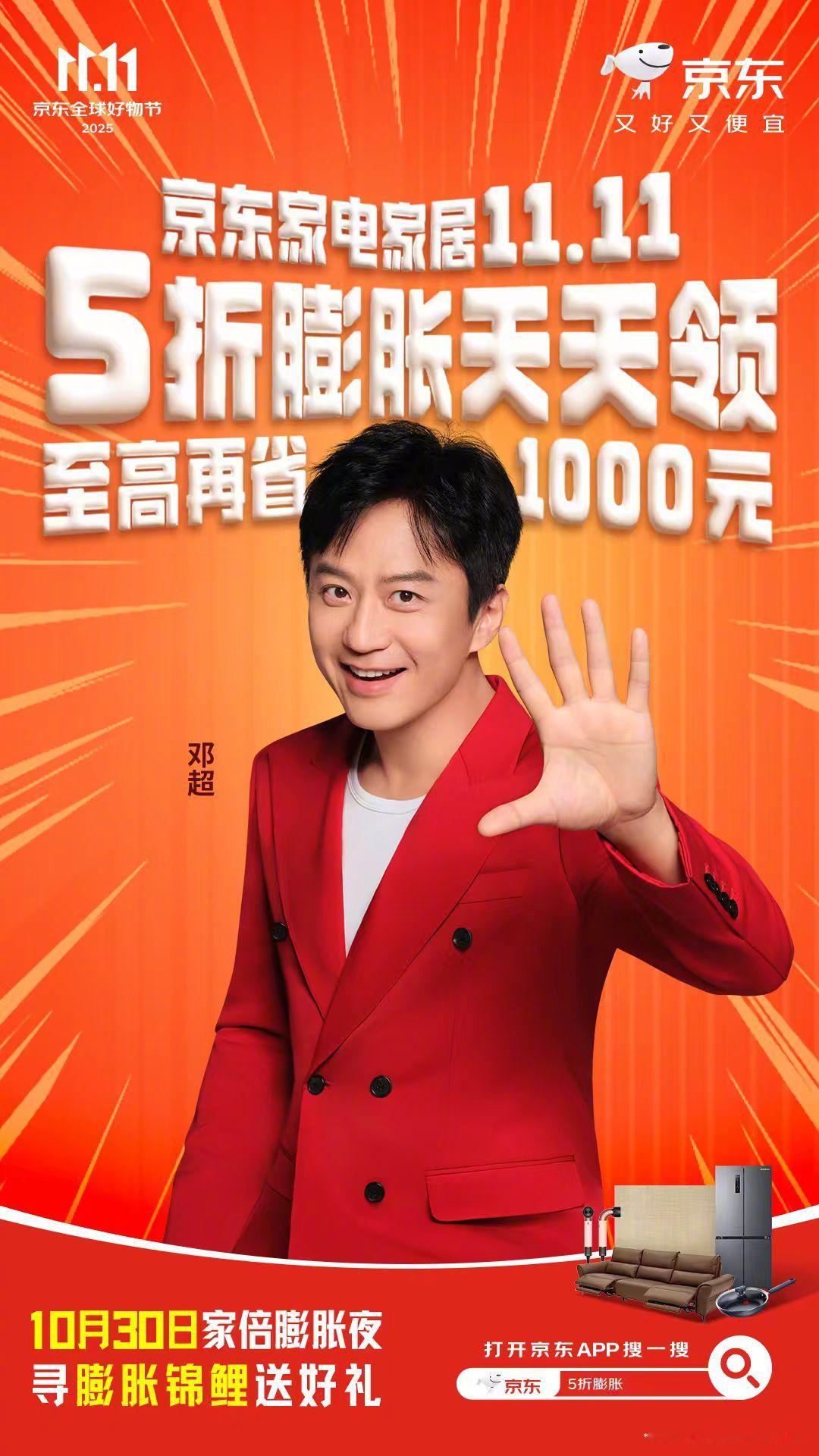家电家居11.11这么选更值想趁着11.11给小窝换个舒服的沙发、智能的洗衣机,又怕钱包扛不住?超哥带着五折膨胀券来了!这次咱听超哥的!来京东搜“5折膨胀”,5折直接膨胀,至高再省1000元,相当于白捡个小家电!果然是要‘超’省才够爽~邓超认证的划算,冲就对了
