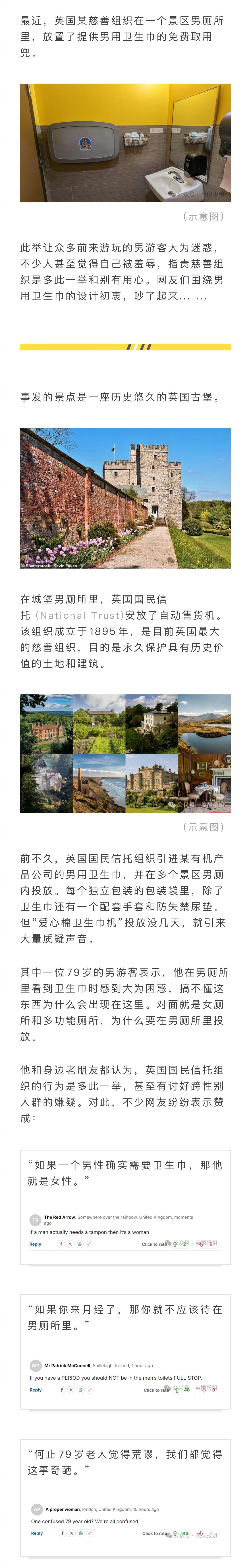 英国景点男厕投放男用卫生巾引争议,投放机构却辩称“男卫”能帮助男性病患解决多种难
